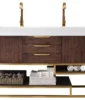 “Columbia 72″ Double Vanity, Coffee Oak, Radiant Gold w/ Glossy White Composite Stone Top” has been added to your cart. View cart