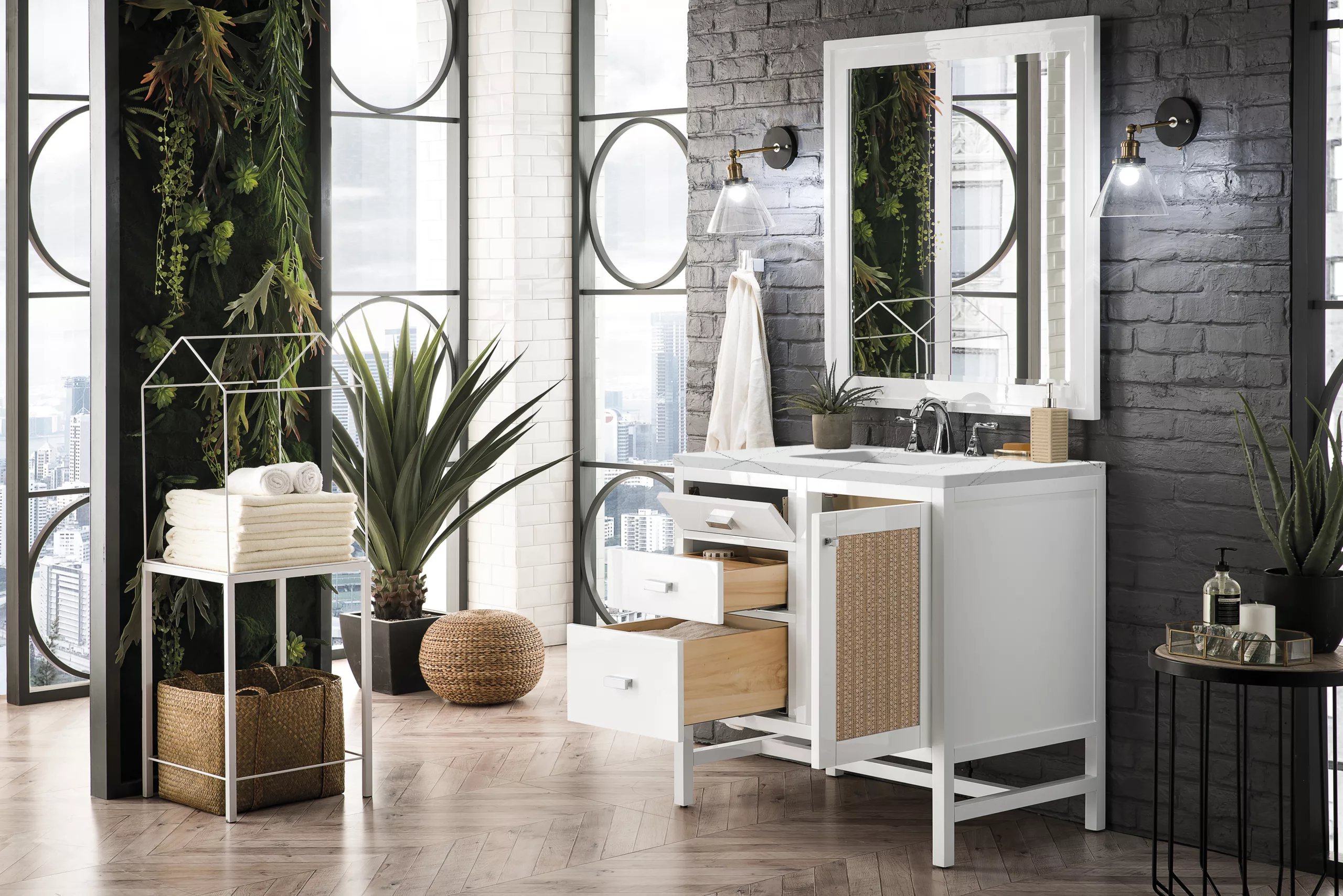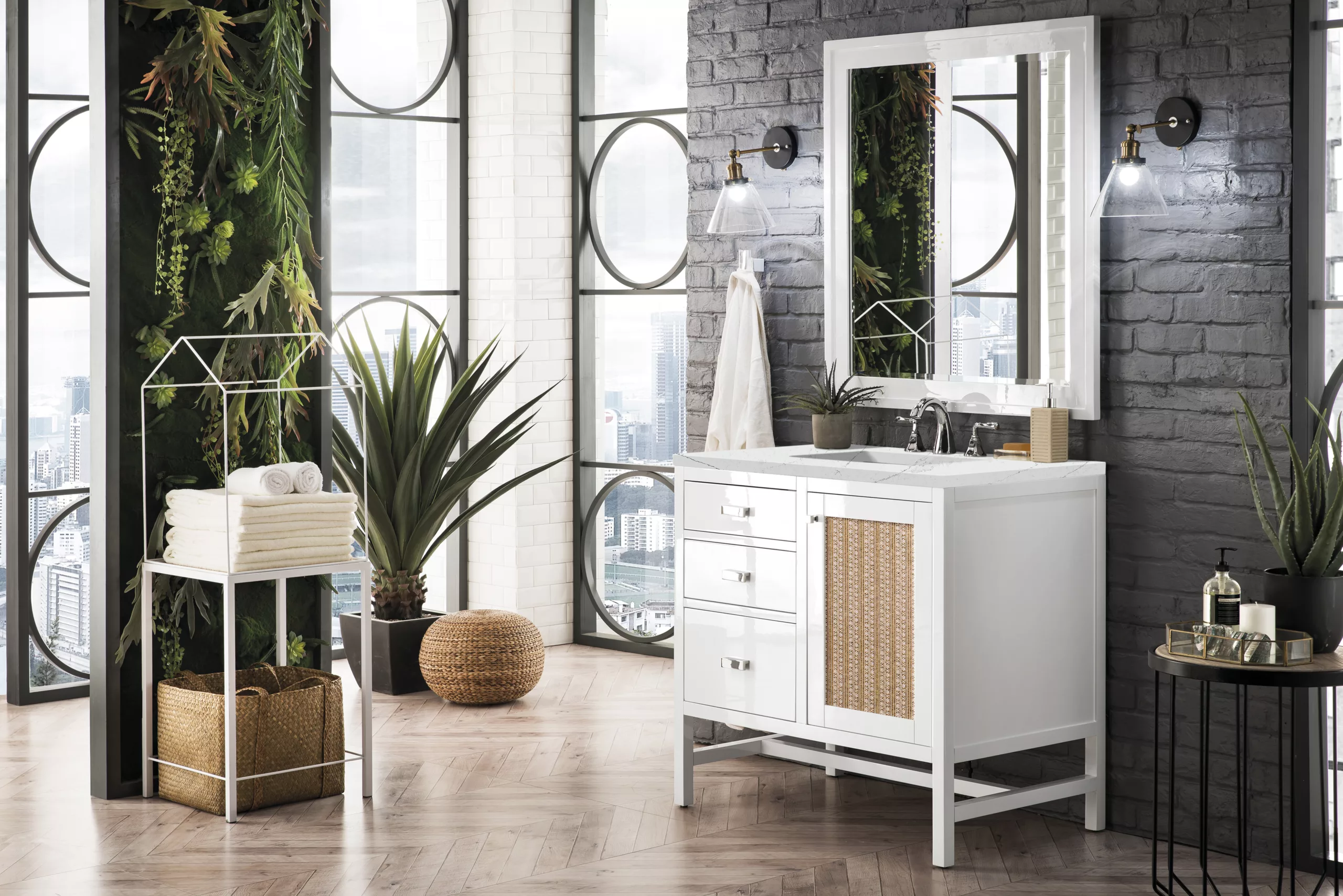 Addison 36″ Single Vanity, Glossy White w/ 3 CM Ethereal Noctis Top