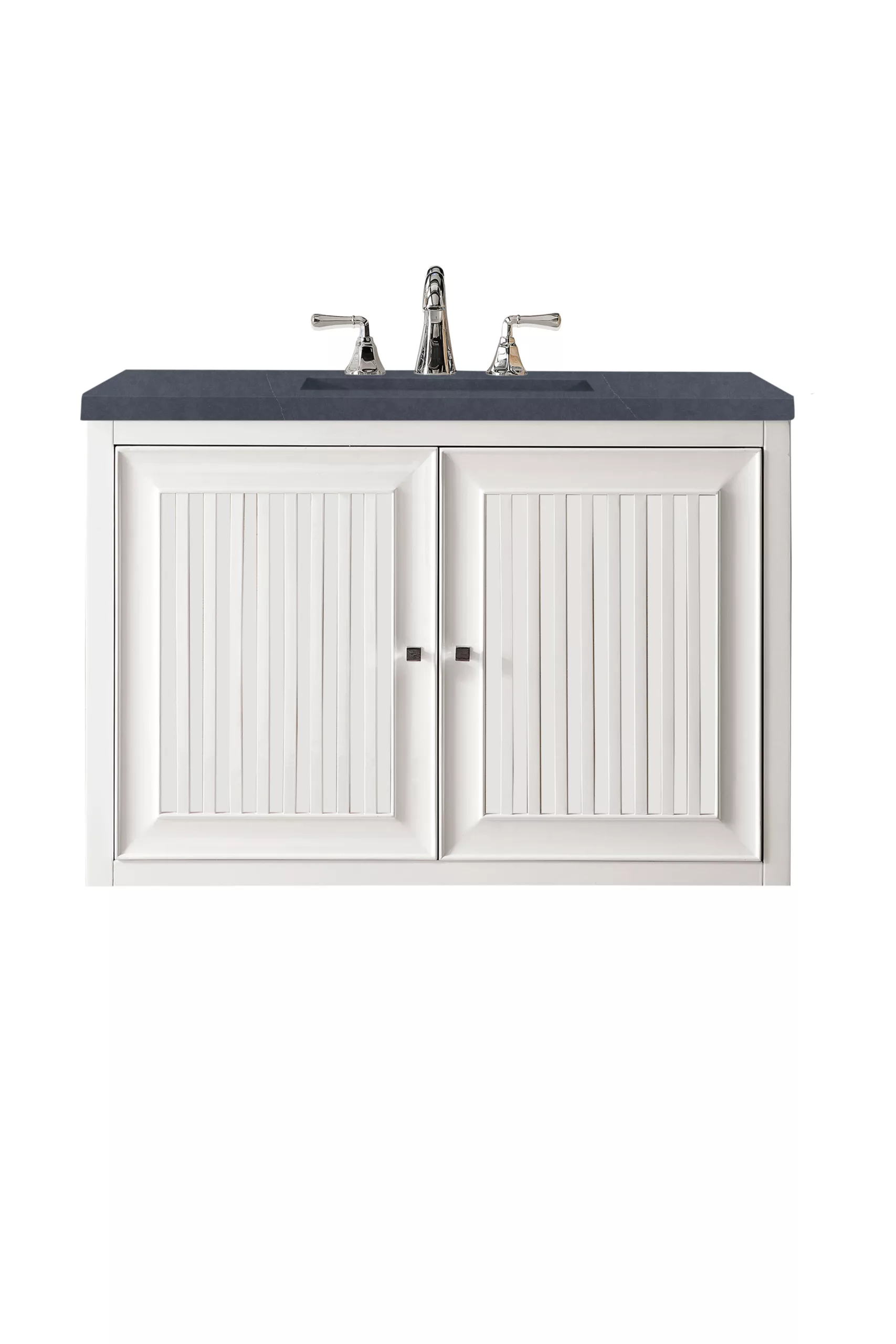 Athens 36″ Single Vanity, Glossy White w/ 3 CM Charcoal Soapstone Quartz Top