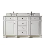 Bristol 60″ Double Vanity, Bright White w/ 3 CM Charcoal Soapstone Quartz Top