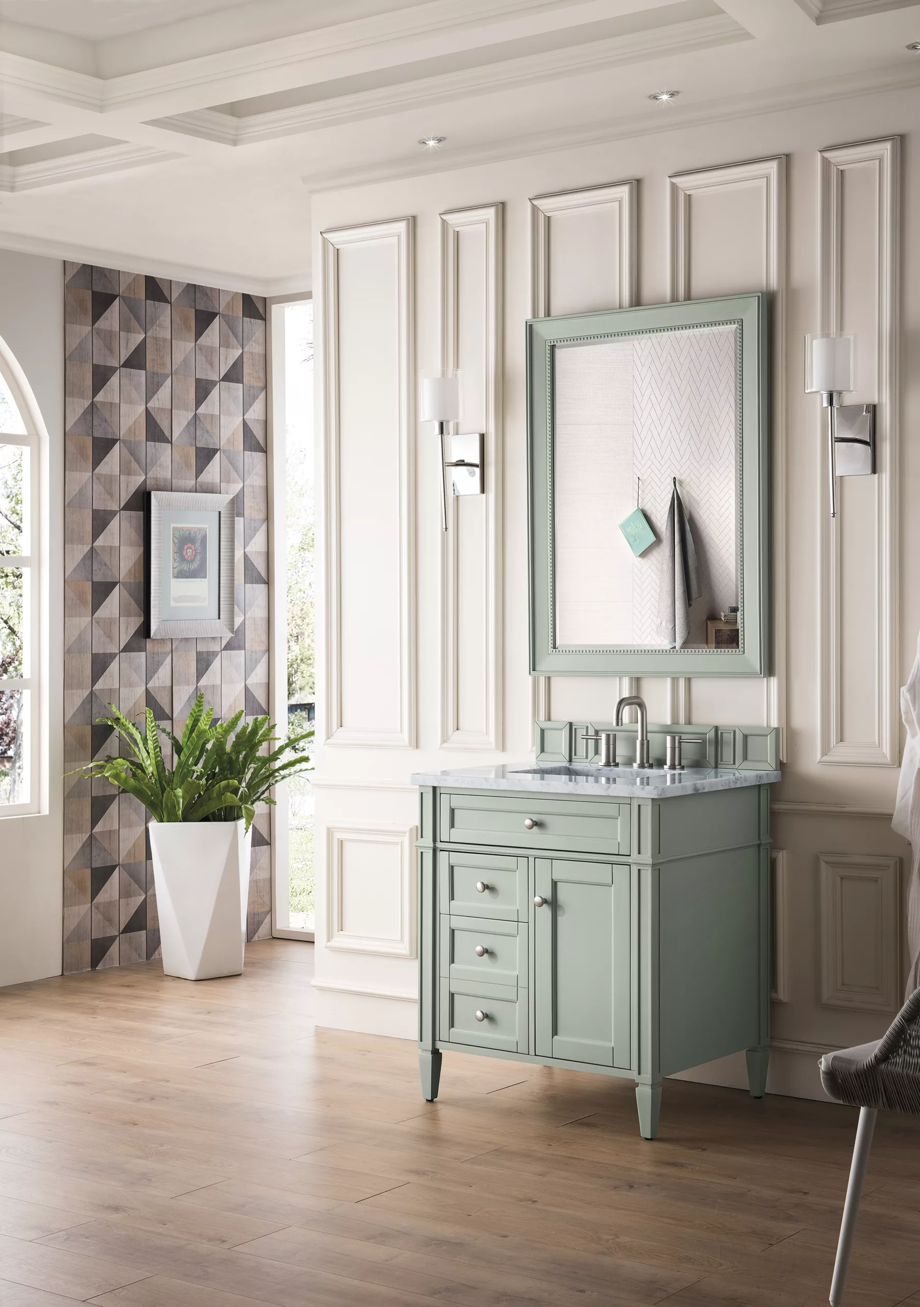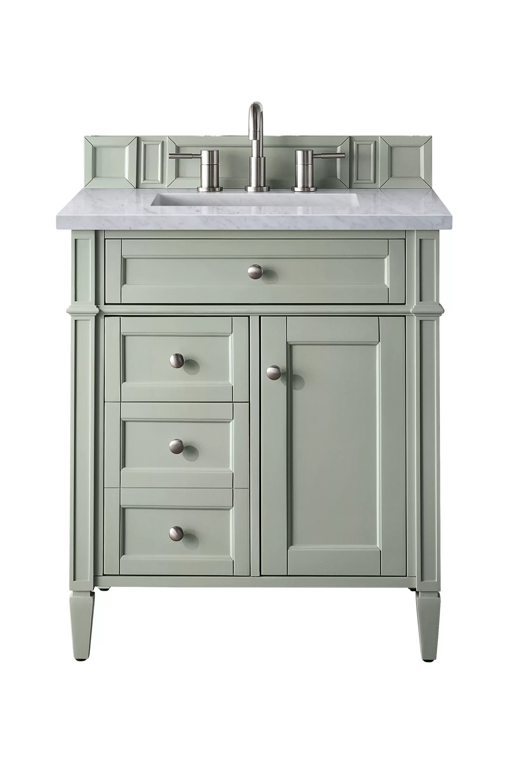 Brittany 30″ Single Vanity, Sage Green w/ 3 CM Carrara Marble Top