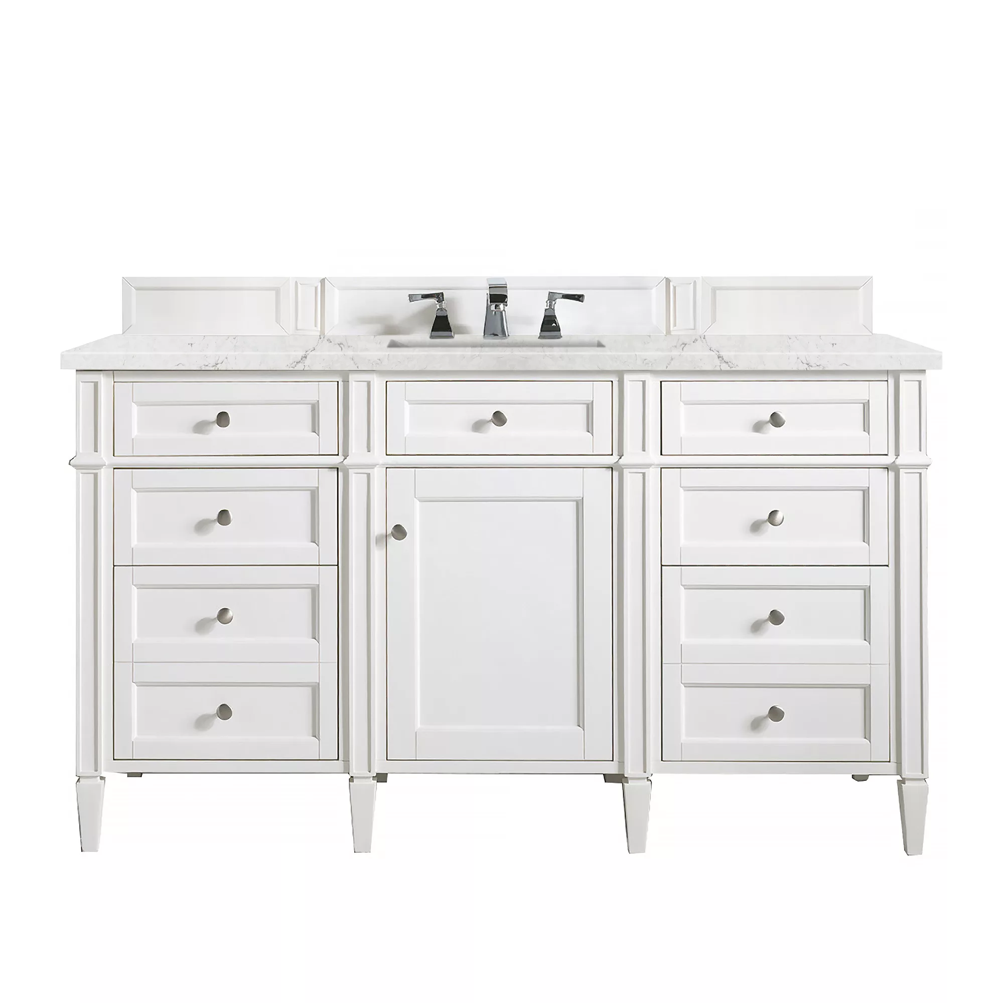 Brittany 60″ Single Vanity, Bright White w/ 3 CM Eternal Jasmine Pearl Quartz Top