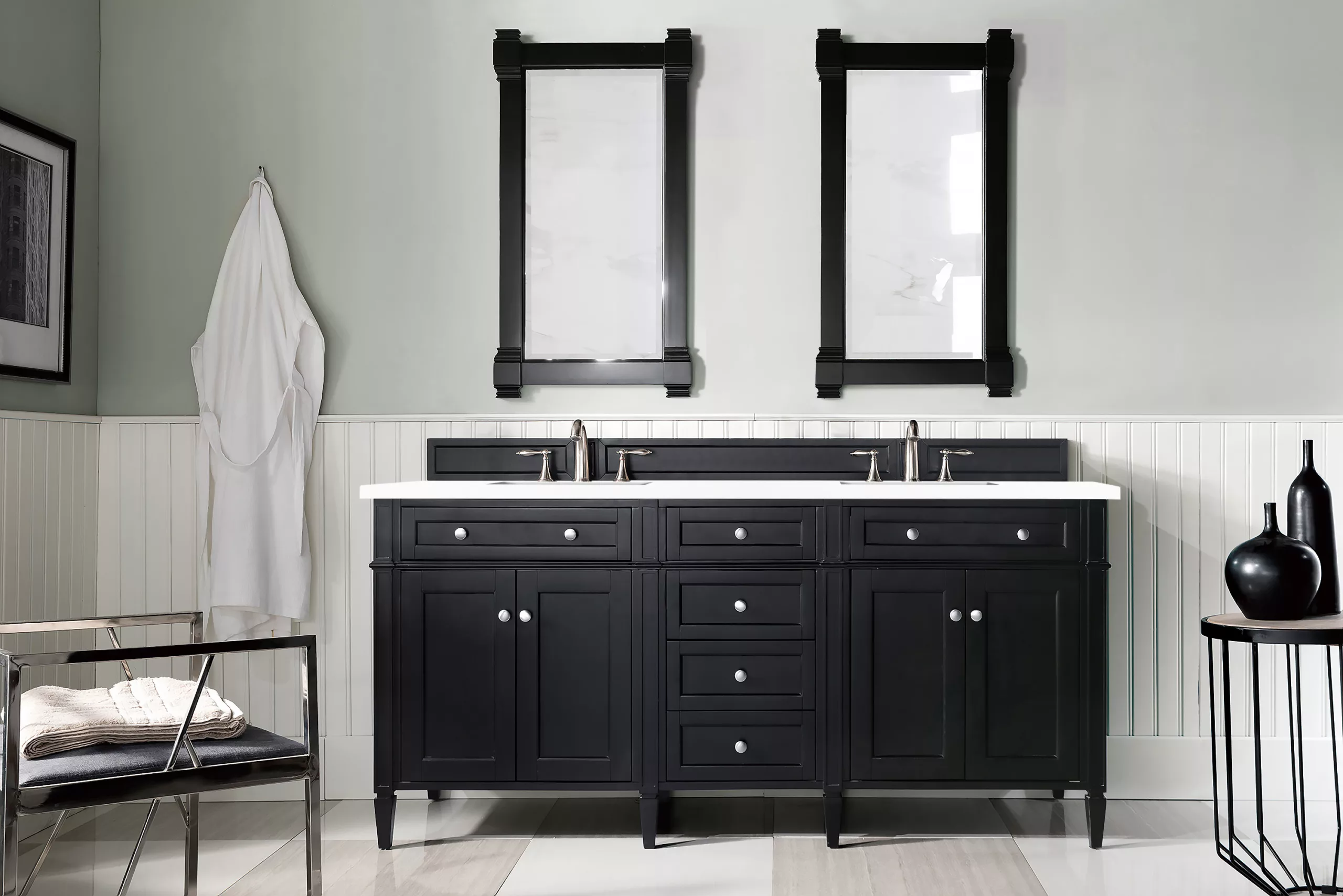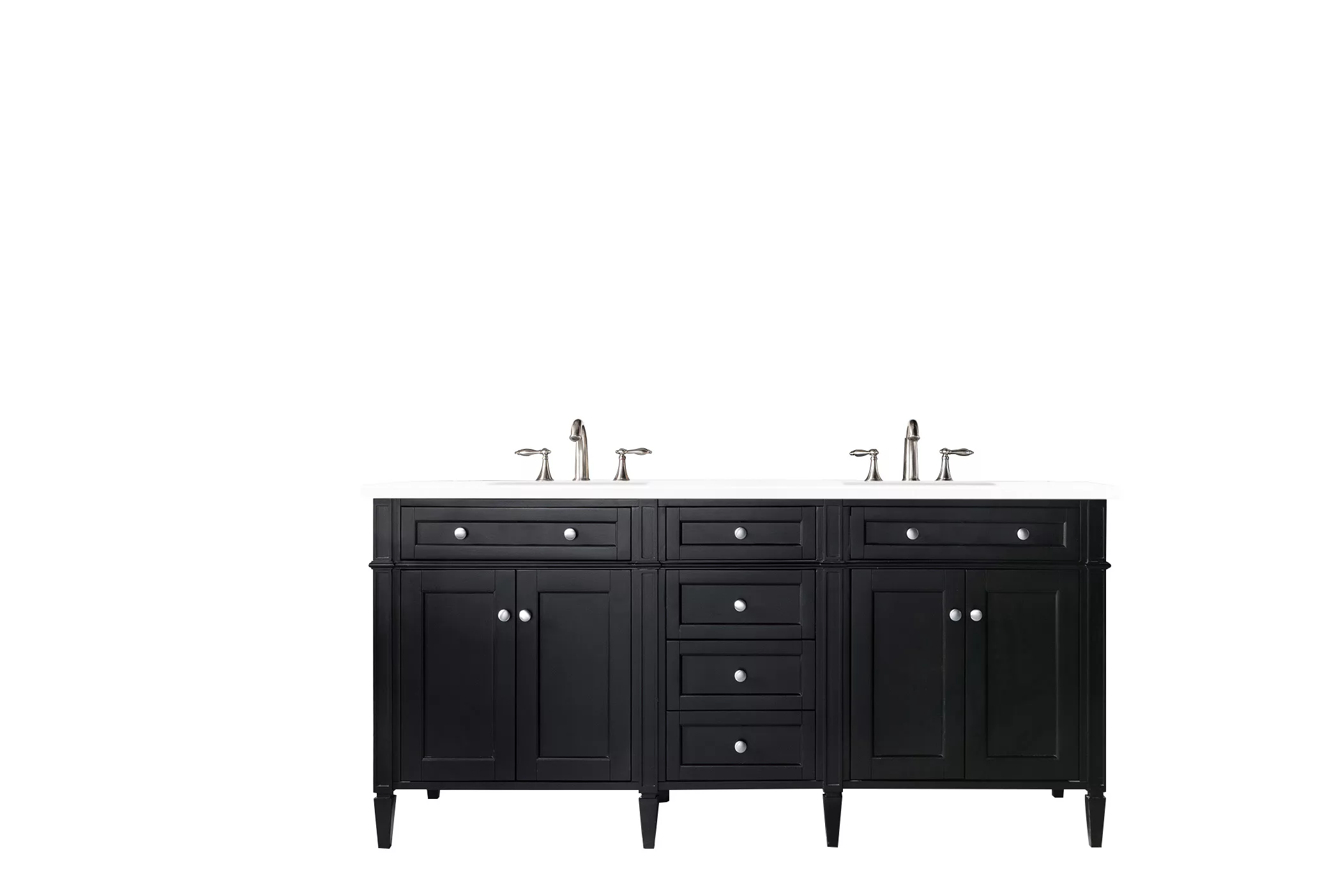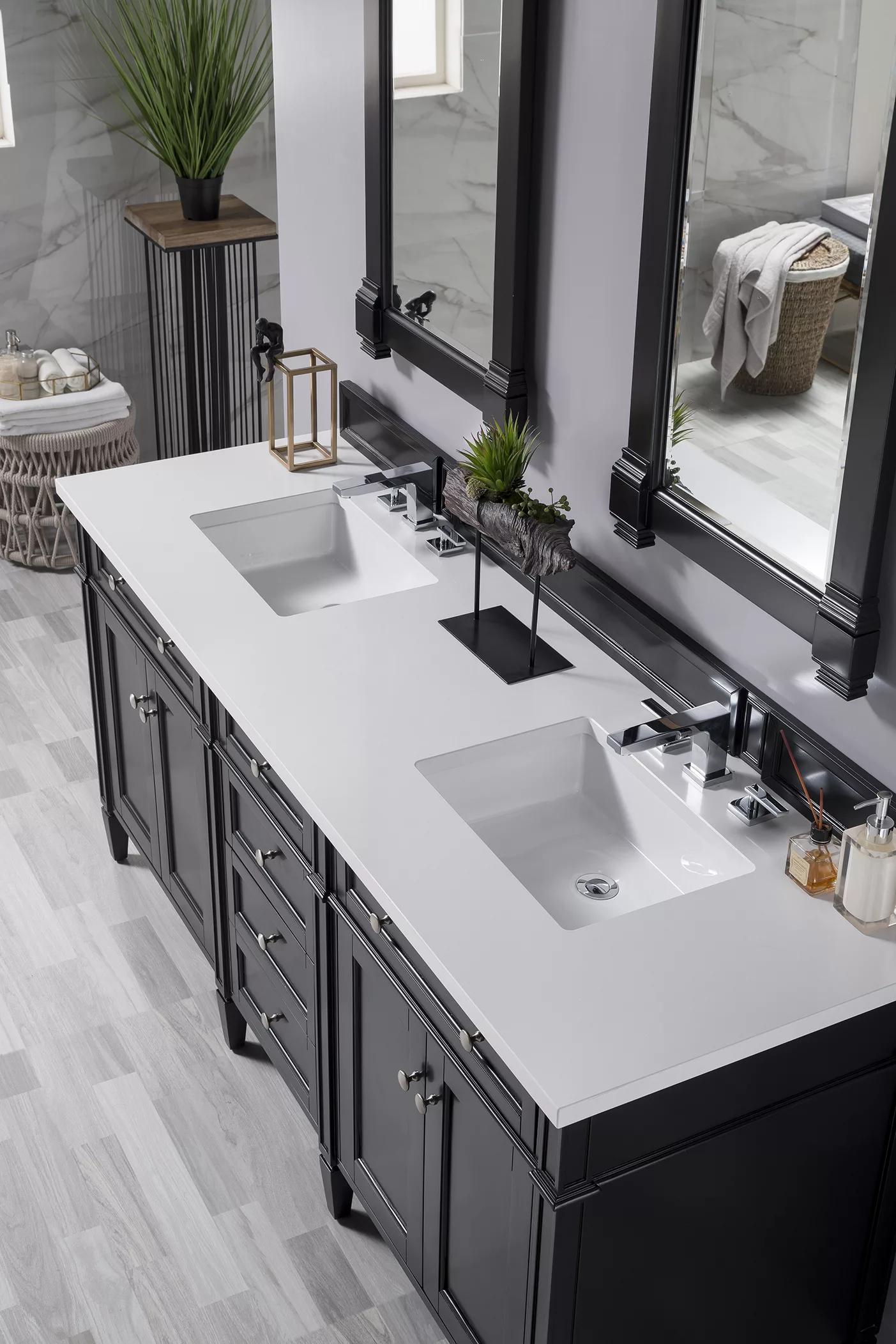 Brittany 72″ Double Vanity, Black Onyx w/ 3 CM White Zeus Quartz Top