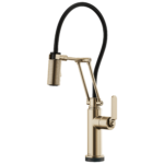 Brizo Litze®: SmartTouch® Articulating Kitchen Faucet with Industrial Handle In Matte Black / Luxe Gold