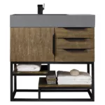 Columbia 36″ Single Vanity, Latte Oak, Matte Black w/ Glossy White Composite Stone Top