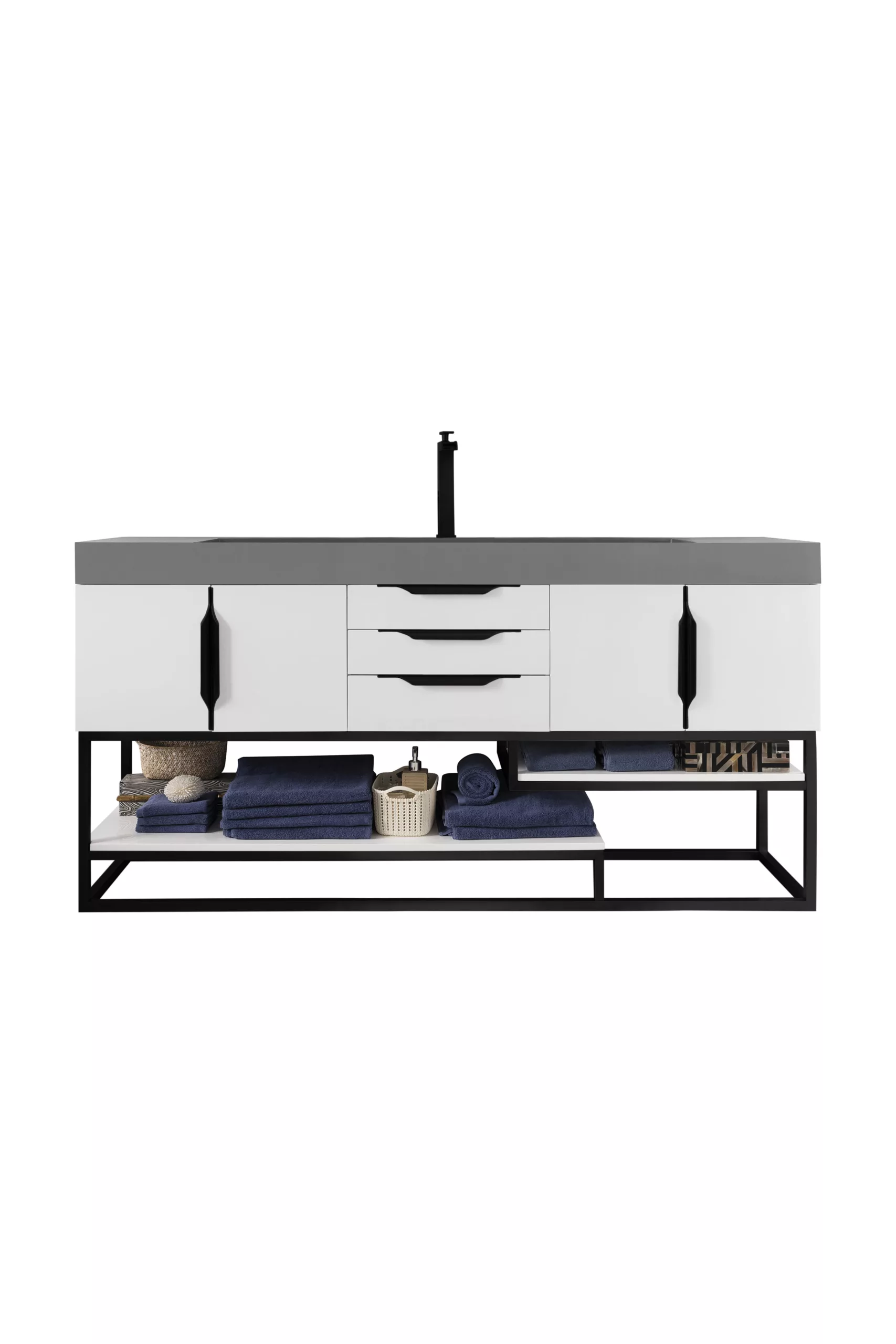 Columbia 72″ Single Vanity, Glossy White, Matte Black w/ Dusk Grey Glossy Composite Stone Top