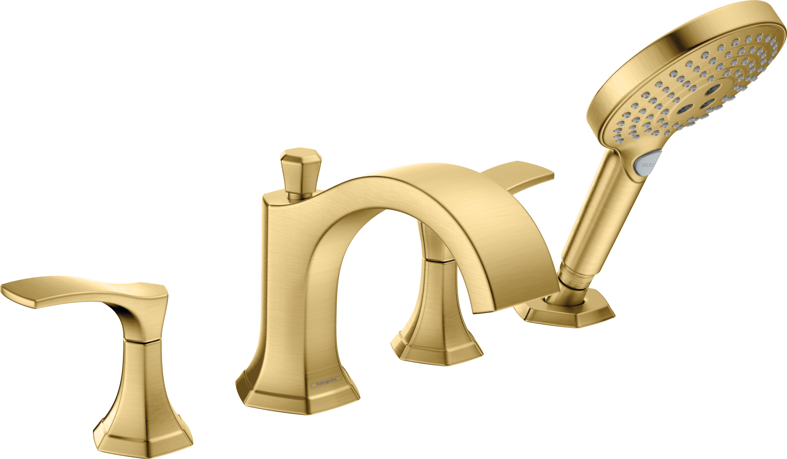 Hansgrohe Locarno 4-Hole Roman Tub Set Trim with 1.75 GPM Handshower in Brushed Gold Optic