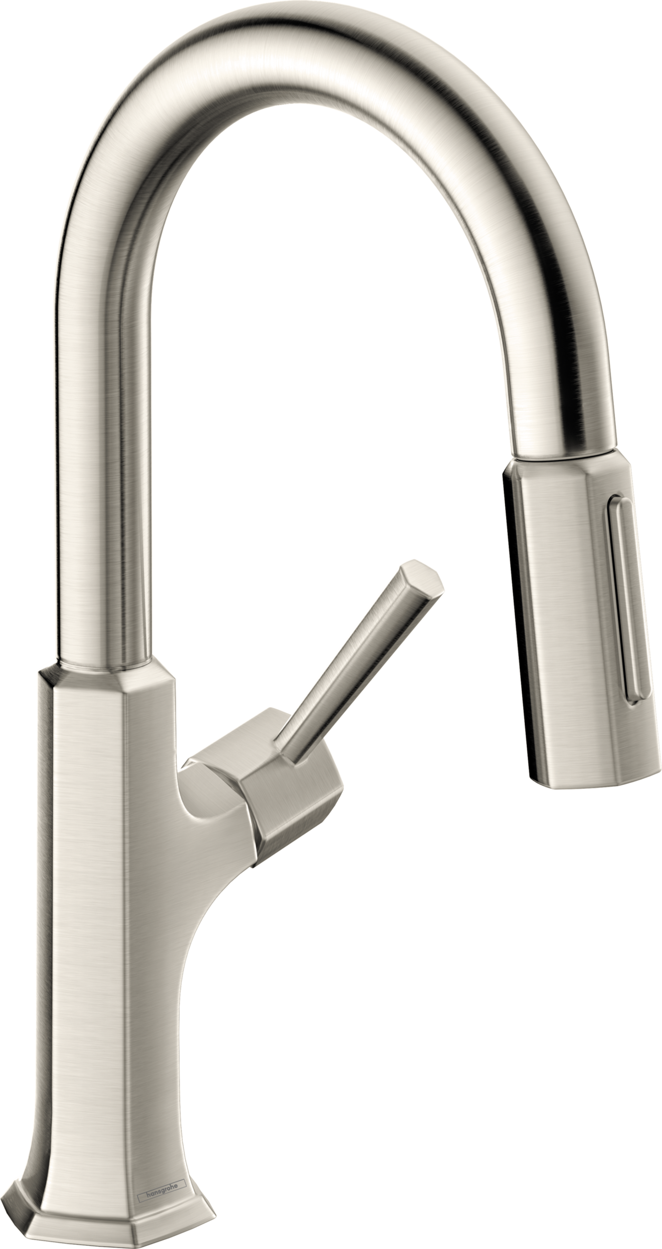 More comfort and room to move: Pull-out sprays or pull-out spouts expand the operating radius around the kitchen sink to take water to exactly where it’s needed in just one motion.