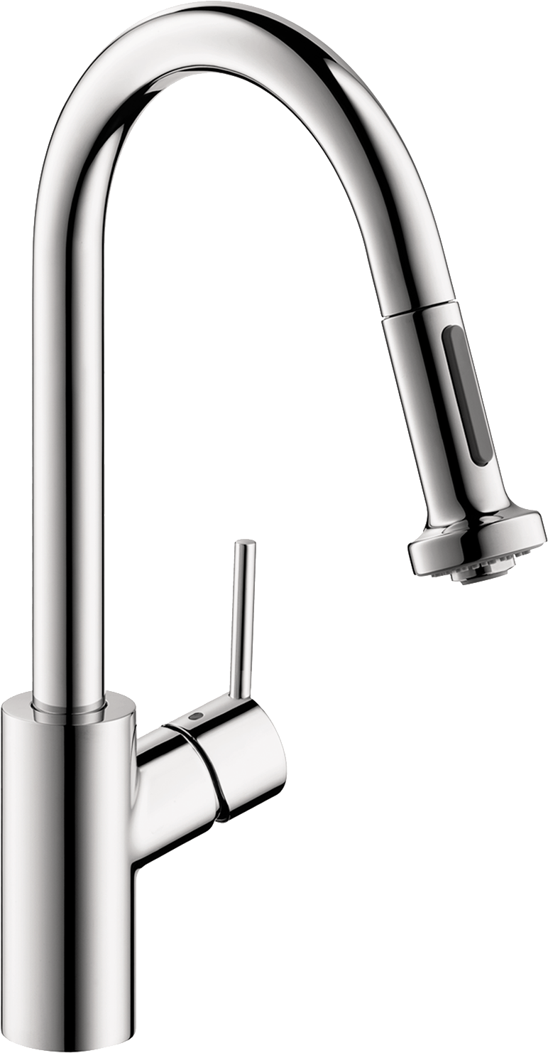 More comfort and room to move: Pull-out sprays or pull-out spouts expand the operating radius around the kitchen sink to take water to exactly where it’s needed in just one motion.