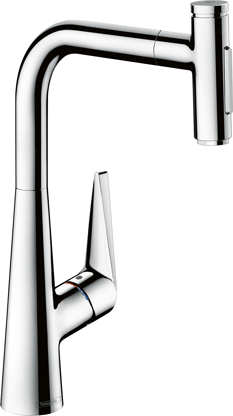 More comfort and room to move: Pull-out sprays or pull-out spouts expand the operating radius around the kitchen sink to take water to exactly where it’s needed in just one motion.