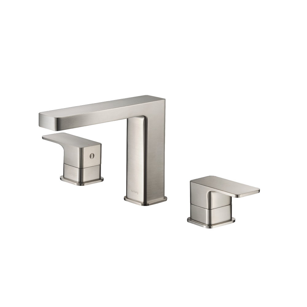 Flusso Three Hole 8″ Widespread Two Handle Bathroom Faucet In Brushed Nickel