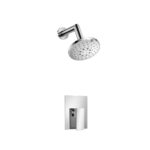 The *7200 series shower set from Isenberg comes with a thermostatic valve and trim with 2 volume controls, wall mount shower arm + head and handshower set with slide bar and supply union.