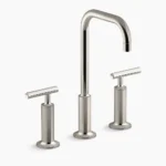 Combining architectural forms with sensual design lines, Purist faucets and accessories bring a touch of modern elegance to your bathroom. This sink faucet exemplifies the Purist collection’s understated style, with its high gooseneck spout and high lever handles. Easy-to-install and leak-free UltraGlide(TM) valves provide reliable performance and durability. And the spout features laminar flow, which helps conserve water while preventing splashing.