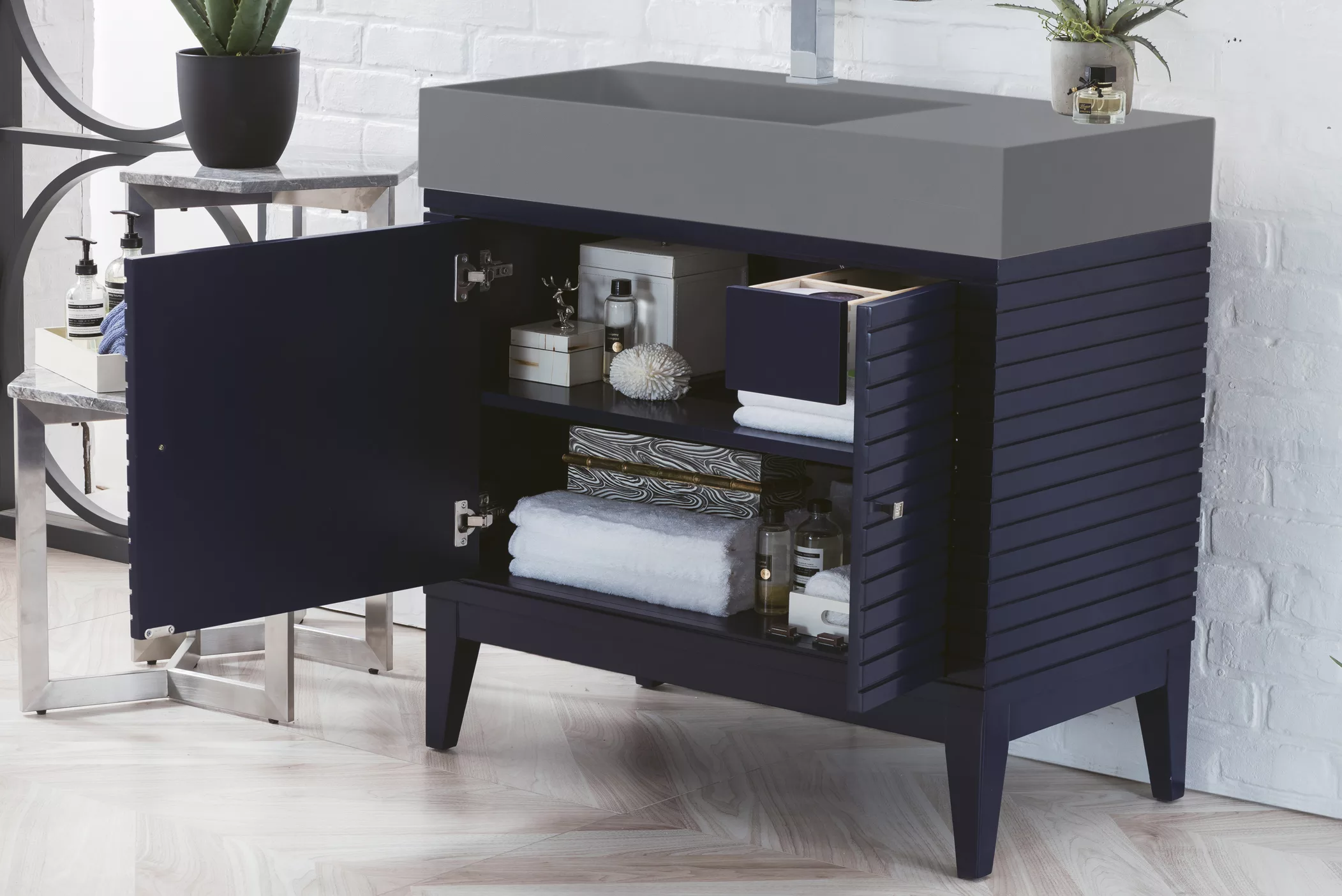 Linear 36″ Single Vanity, Victory Blue w/ Dusk Grey Glossy Composite Stone Top