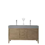 Linear 59″ Double Vanity, Mid-Century Walnut w/ Glossy White Composite Stone Top