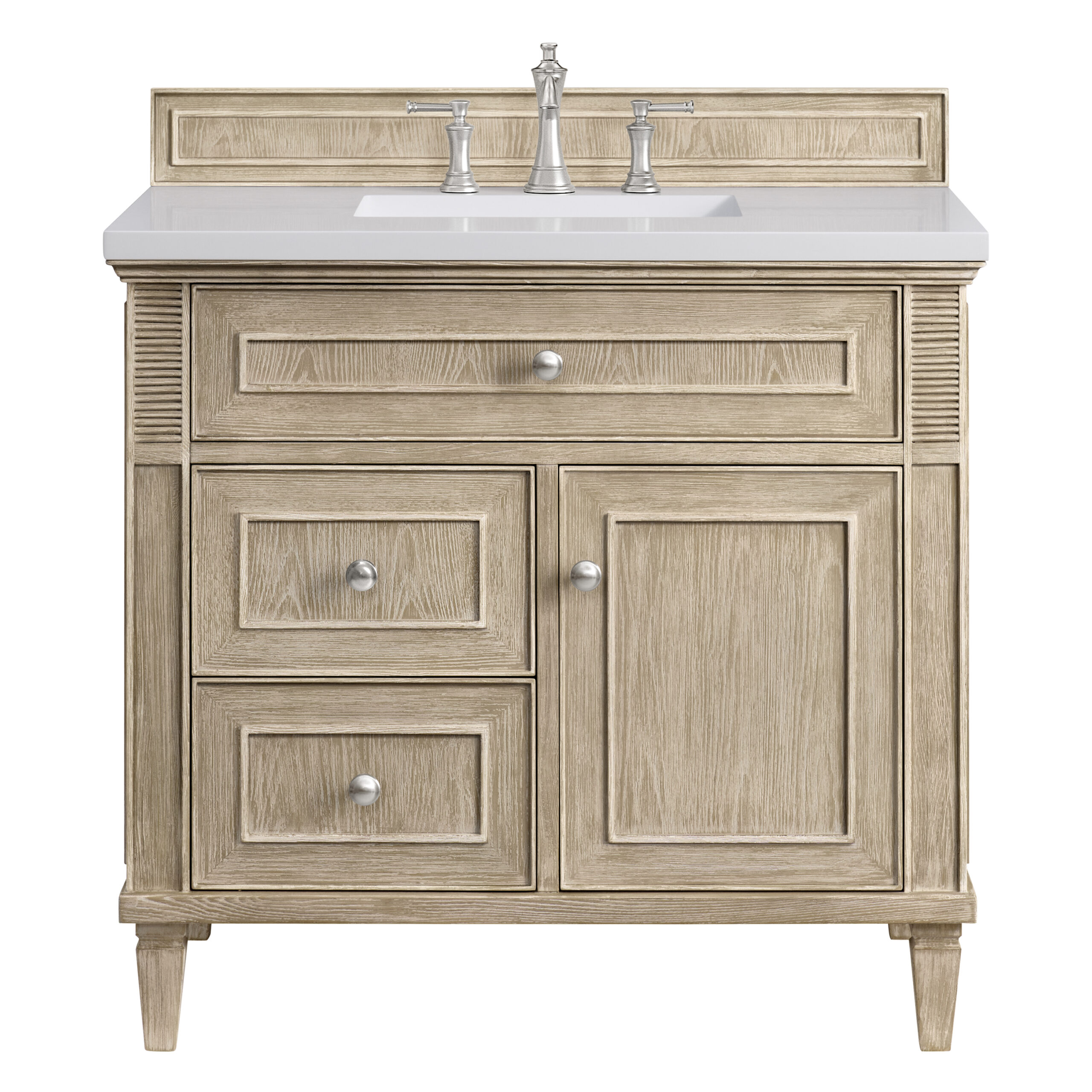 The 36″ Lorelai Single Vanity celebrates timeless form and exquisite finish details, combined with practical function. The Whitewashed Oak finish is accented by reeded details, and clean, raised picture frame molding. Coin-edge knobs in Satin Nickel provide the perfect accent. This single-door cabinet opens to a spacious interior with a single shelf and a convenient USB/Electric power outlet. Two drawers and an upper tip-out drawer offer additional storage space. With the addition of a classic White Zeus Silestone top and undermount sink, this vanity is a seamless integration of modern design and functionality.
