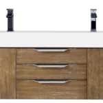 The Mercer Island 72″ Glossy White Double Vanity offers maximum storage with two soft-closing doors, three soft-closing drawers, and lower shelf space. This cabinet includes premium features such as one solid bamboo drawer organizer and one 120 Volt UL Rated electrical component with two electrical and two USB outlets. Cabinet includes Matte Black door and drawer pulls. Glossy White Composite Stone countertop with integrated wide, angled trough-style sink. This wall-mounted vanity includes heavy duty mounting brackets to create a modern look.