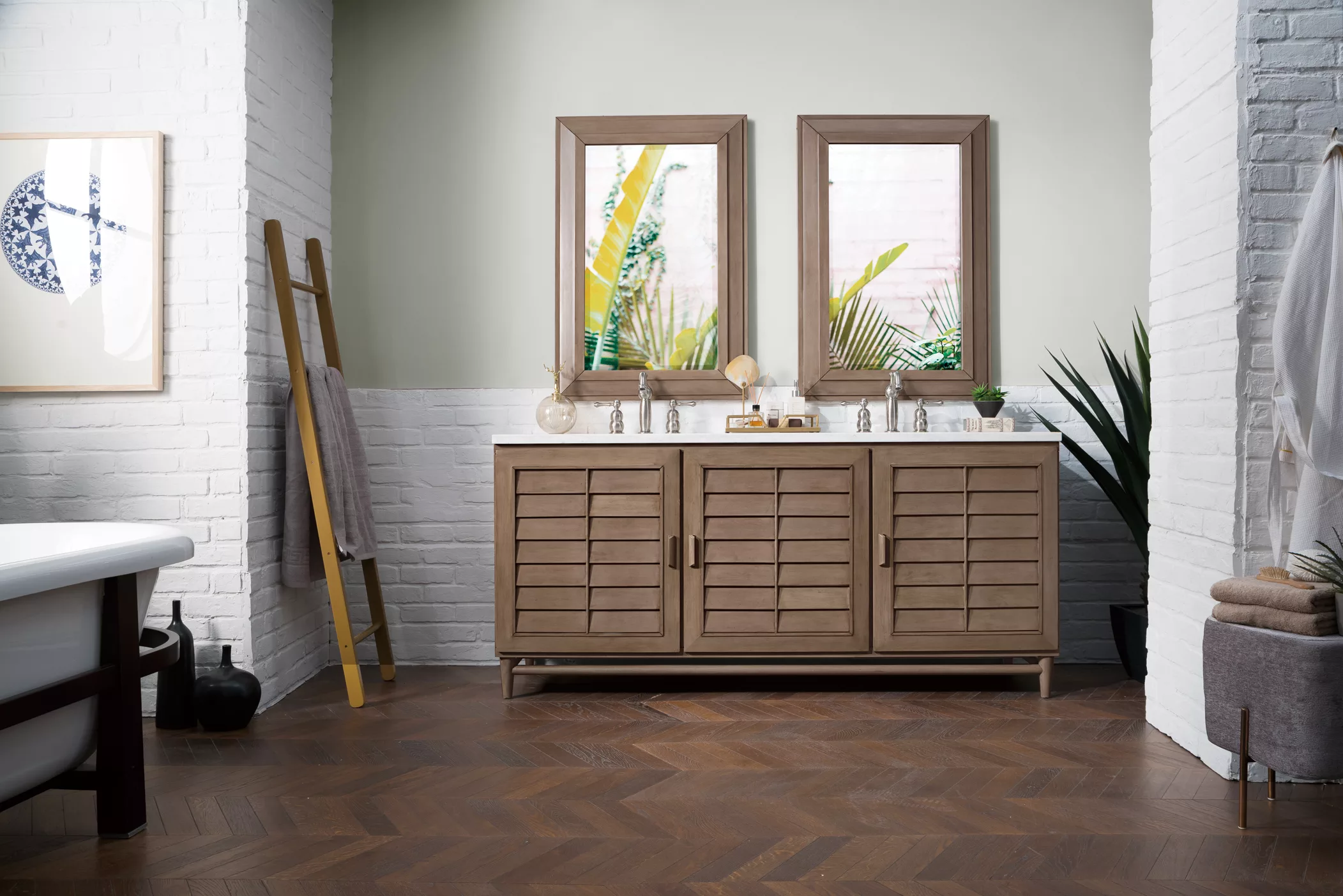 Portland 72″ Double Vanity Whitewashed Walnut w/ 3 CM Arctic Fall Solid Surface Top