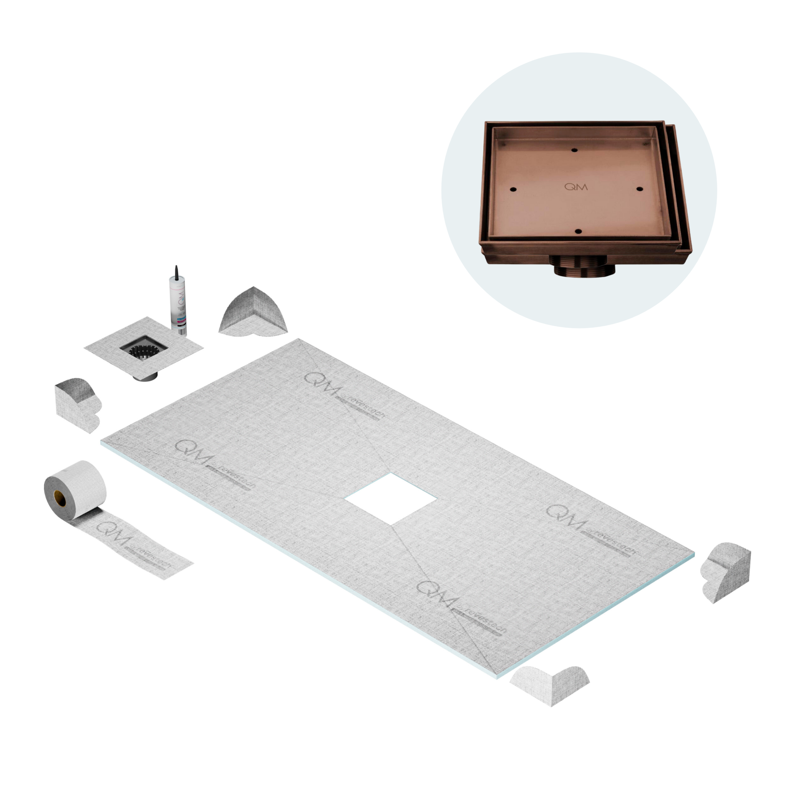 Committed to sustainable construction, avoiding environmental impact, and ensuring a healthy environment. QM shower pan and waterproofing membranes are 100% recyclable.