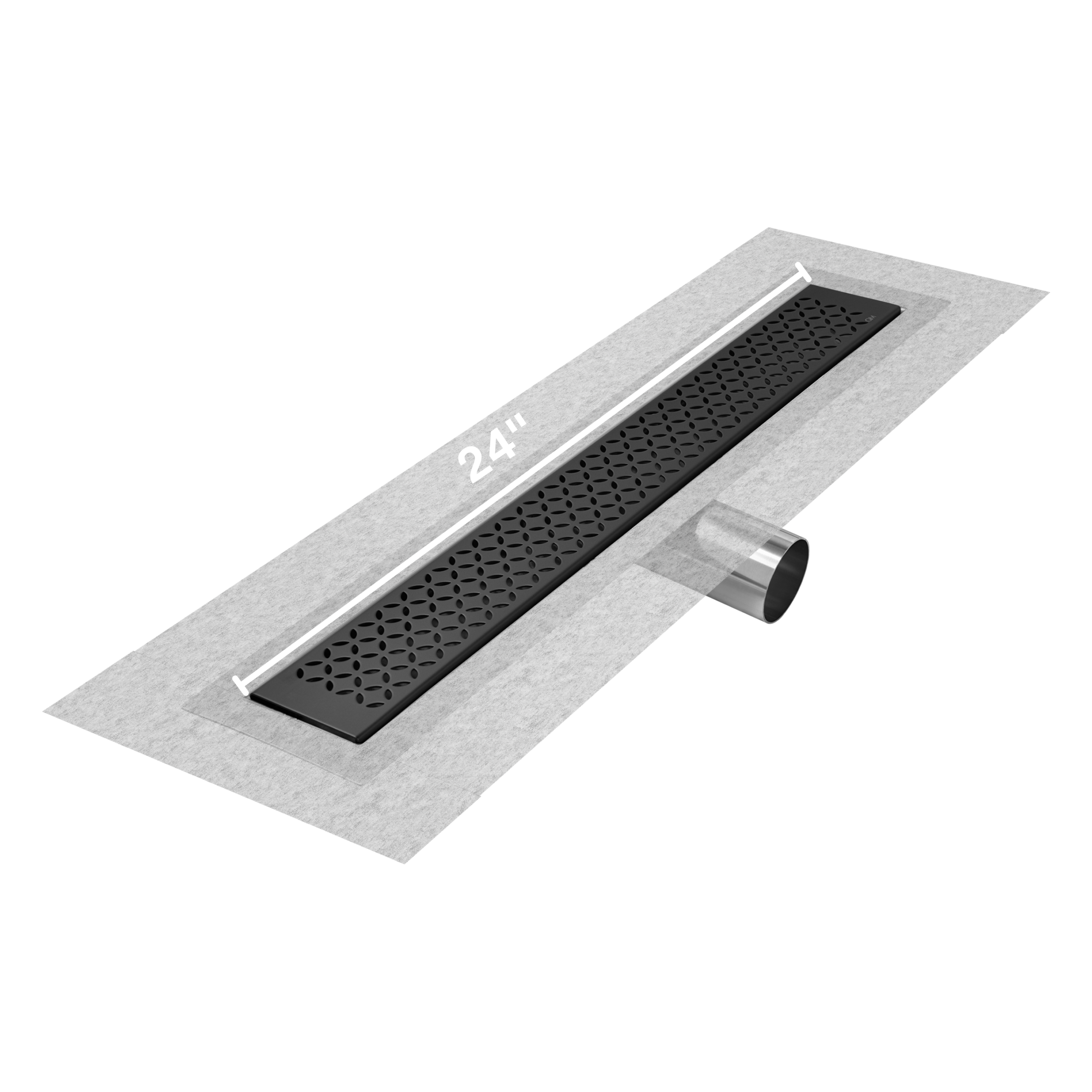 QM Delmar Series. 24″ Standard length Side Outlet linear drain. Lotus Line. Black