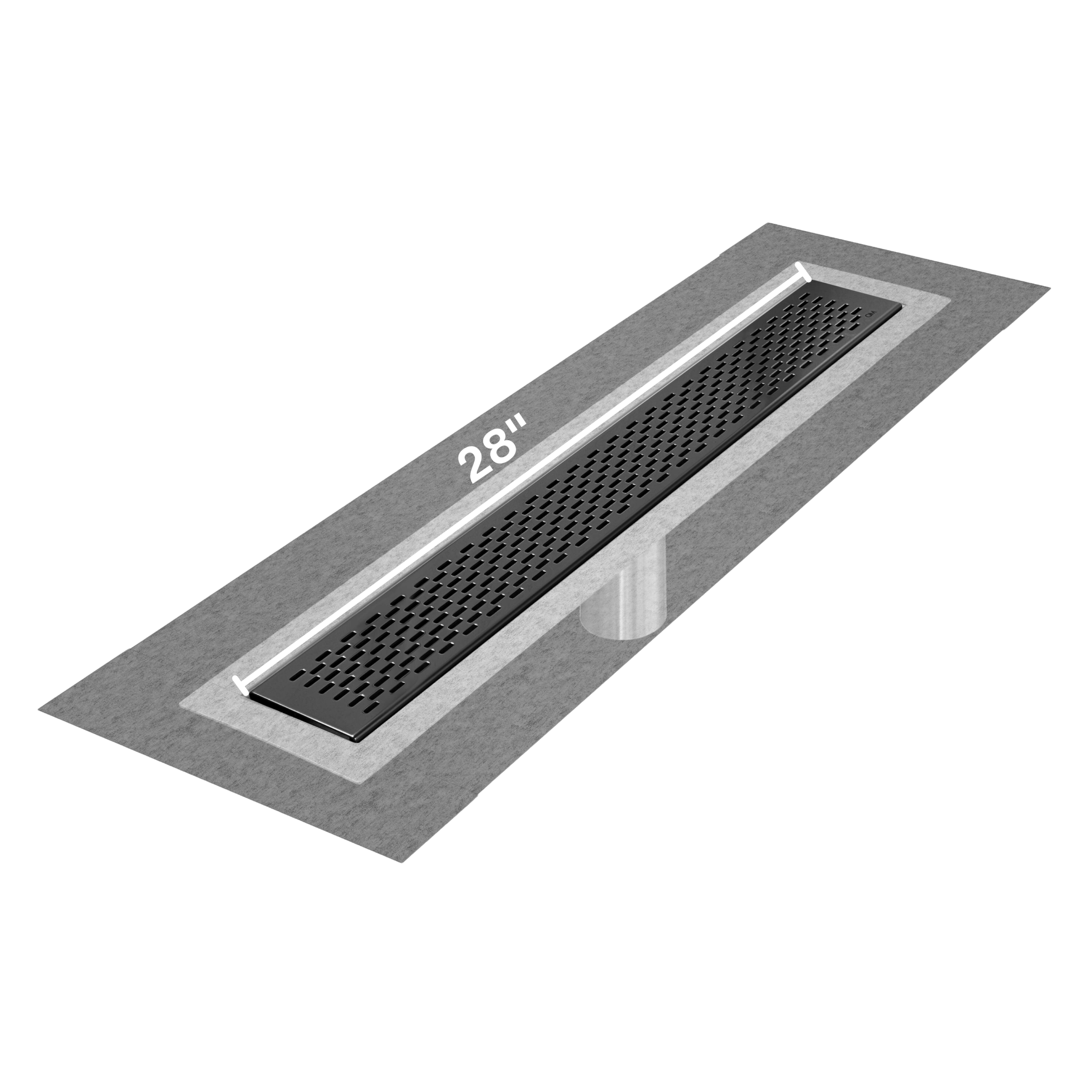 QM Delmar Series. 28″ Standard length Flange Edge linear drain. Delta Line. Black