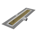 QM Delmar Series. 28″ Standard length Side Outlet linear drain. Wedgewire Line. Gold