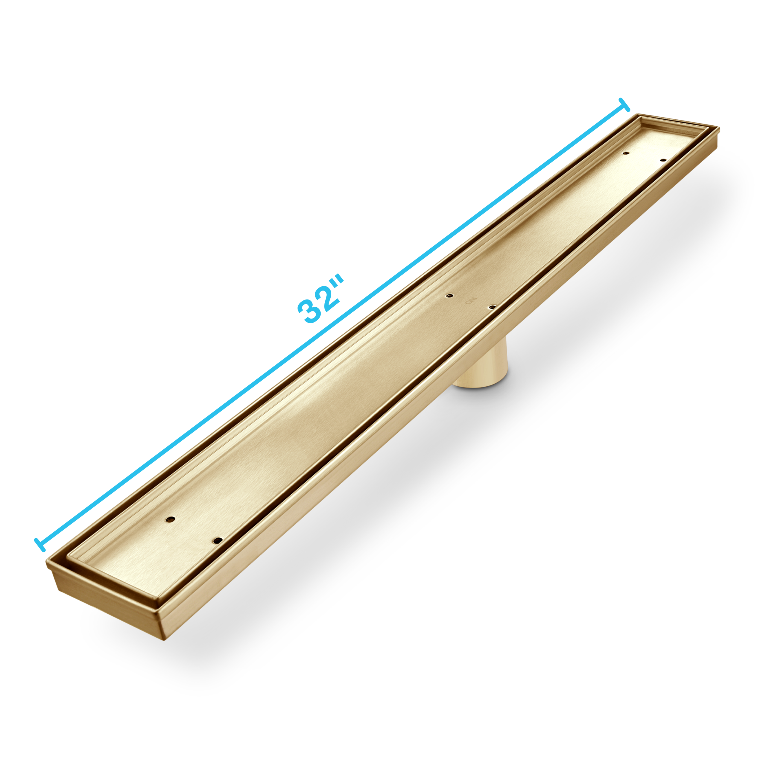 QM Delmar Series. 32″ Standard length Plain Edge linear drain. Mist (Tile-in) Line. Gold