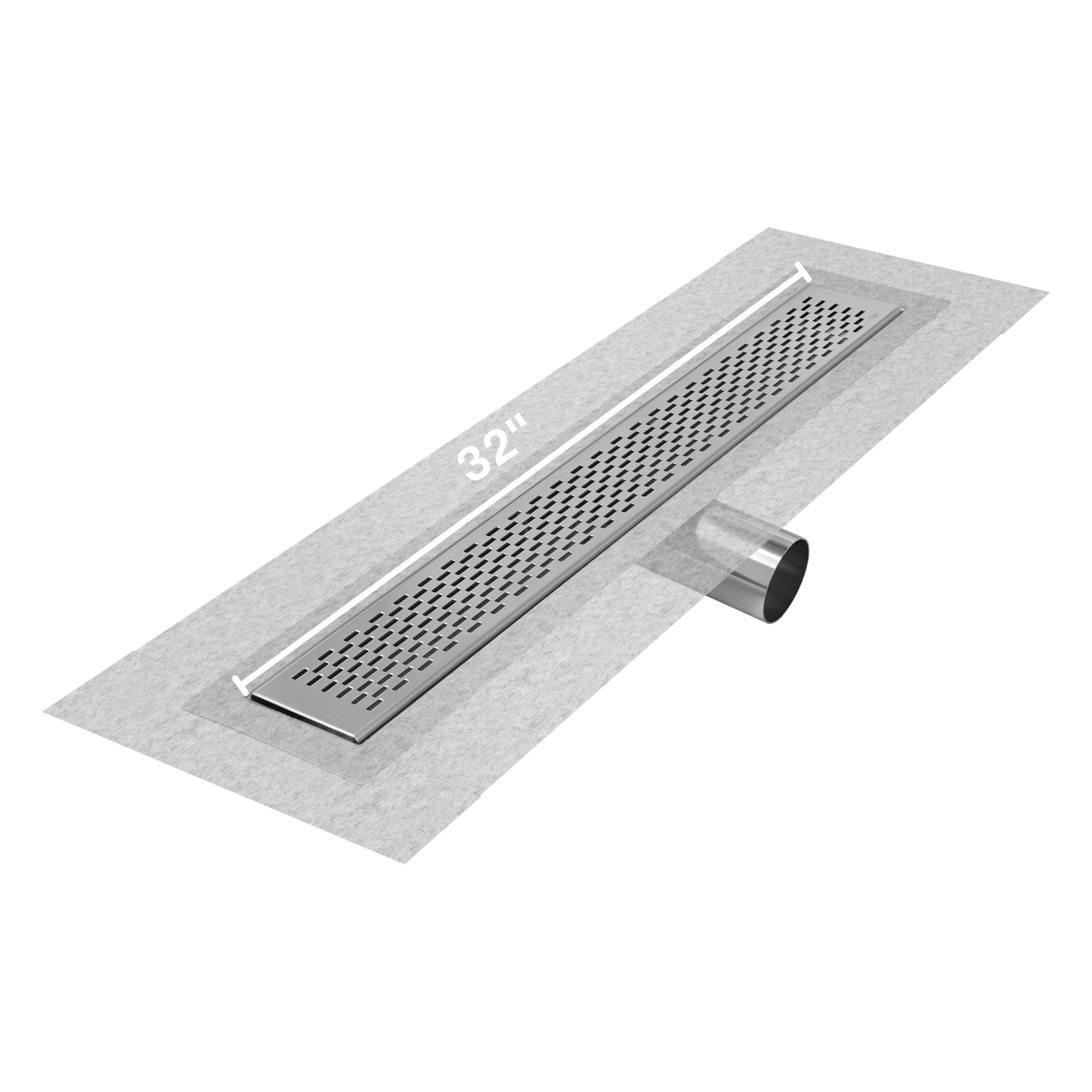 QM Delmar Series. 32″ Standard length Side Outlet linear drain. Delta Line. Satin