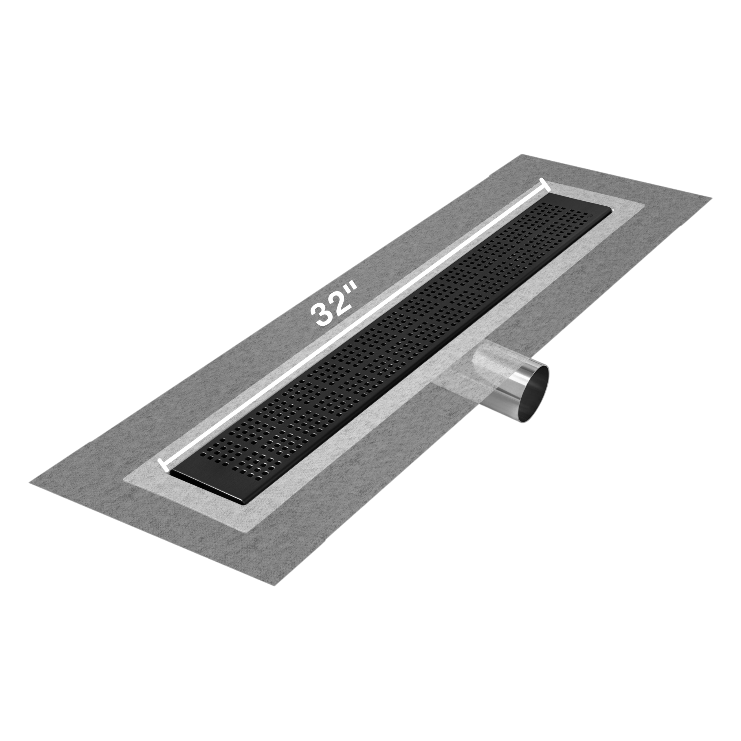 QM Delmar Series. 32″ Standard length Side Outlet linear drain. Kai Line. Black
