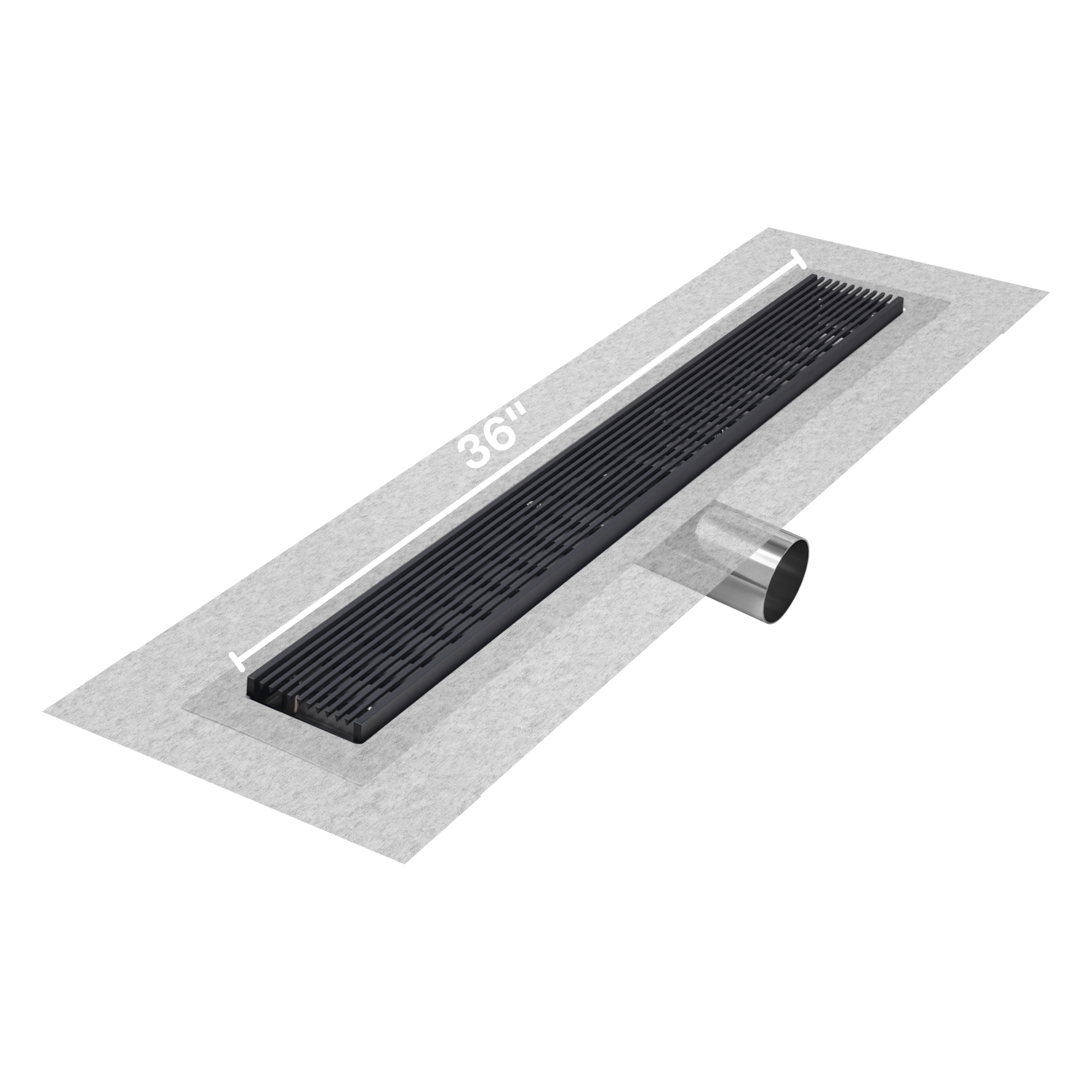 QM Delmar Series. 36″ Standard length Side Outlet linear drain. Wedgewire Line. Black