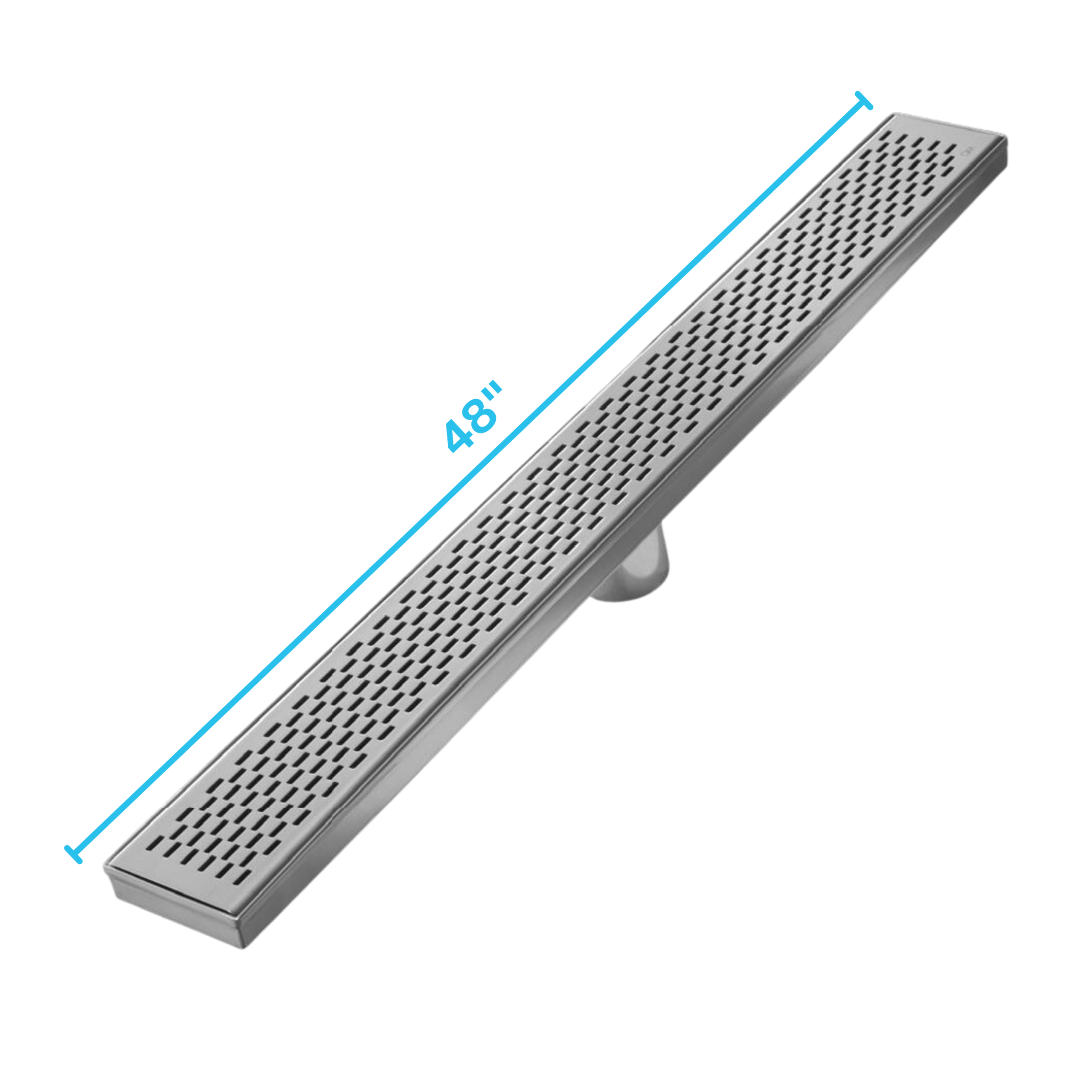 QM Delmar Series. 48″ Standard length Plain Edge linear drain. Delta Line. Satin