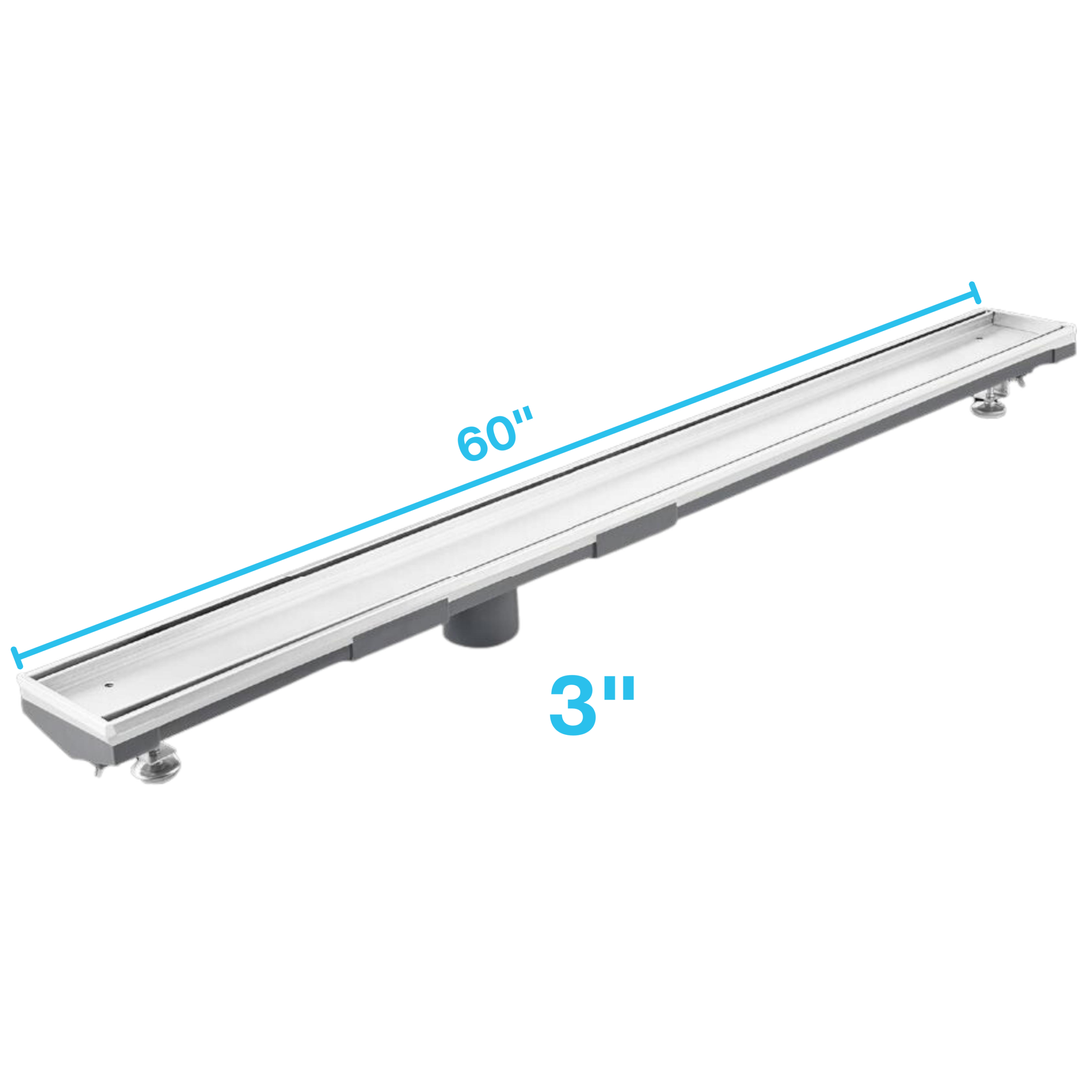 Material: The grate and edge trims exhibit durability through their construction with stainless steel 316, ensuring longevity and resistance to corrosion. Meanwhile, the channel is fabricated from PVC, providing a balance between functionality and cost-effectiveness.