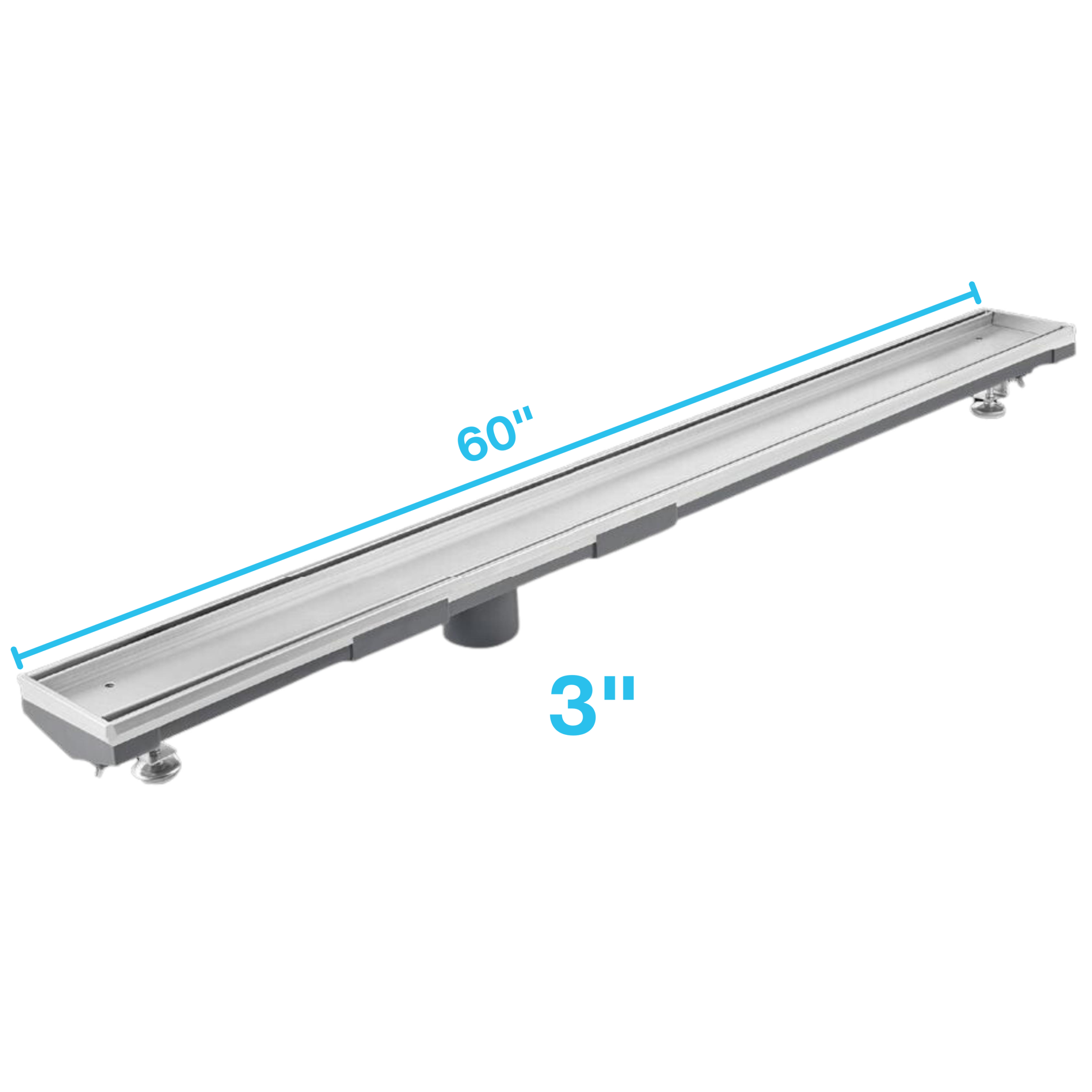Material: The grate and edge trims exhibit durability through their construction with stainless steel 316, ensuring longevity and resistance to corrosion. Meanwhile, the channel is fabricated from PVC, providing a balance between functionality and cost-effectiveness.