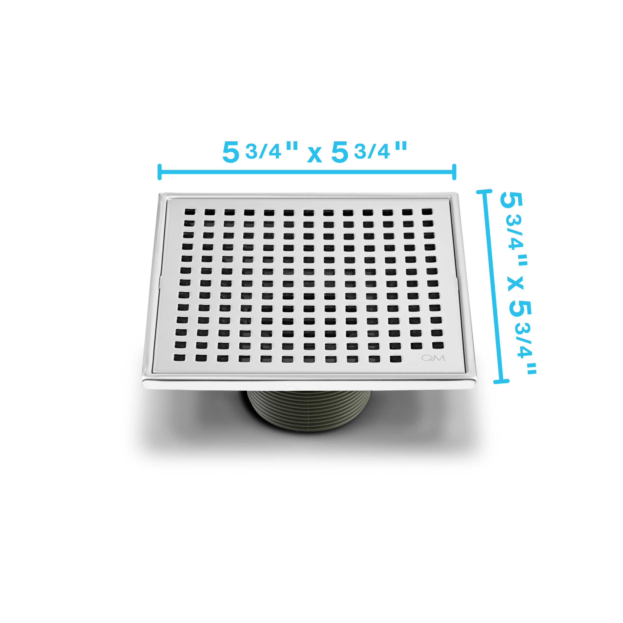 QM Lagos Series. Mira Line. 5 3/4″ Square Drain. Polished fin.