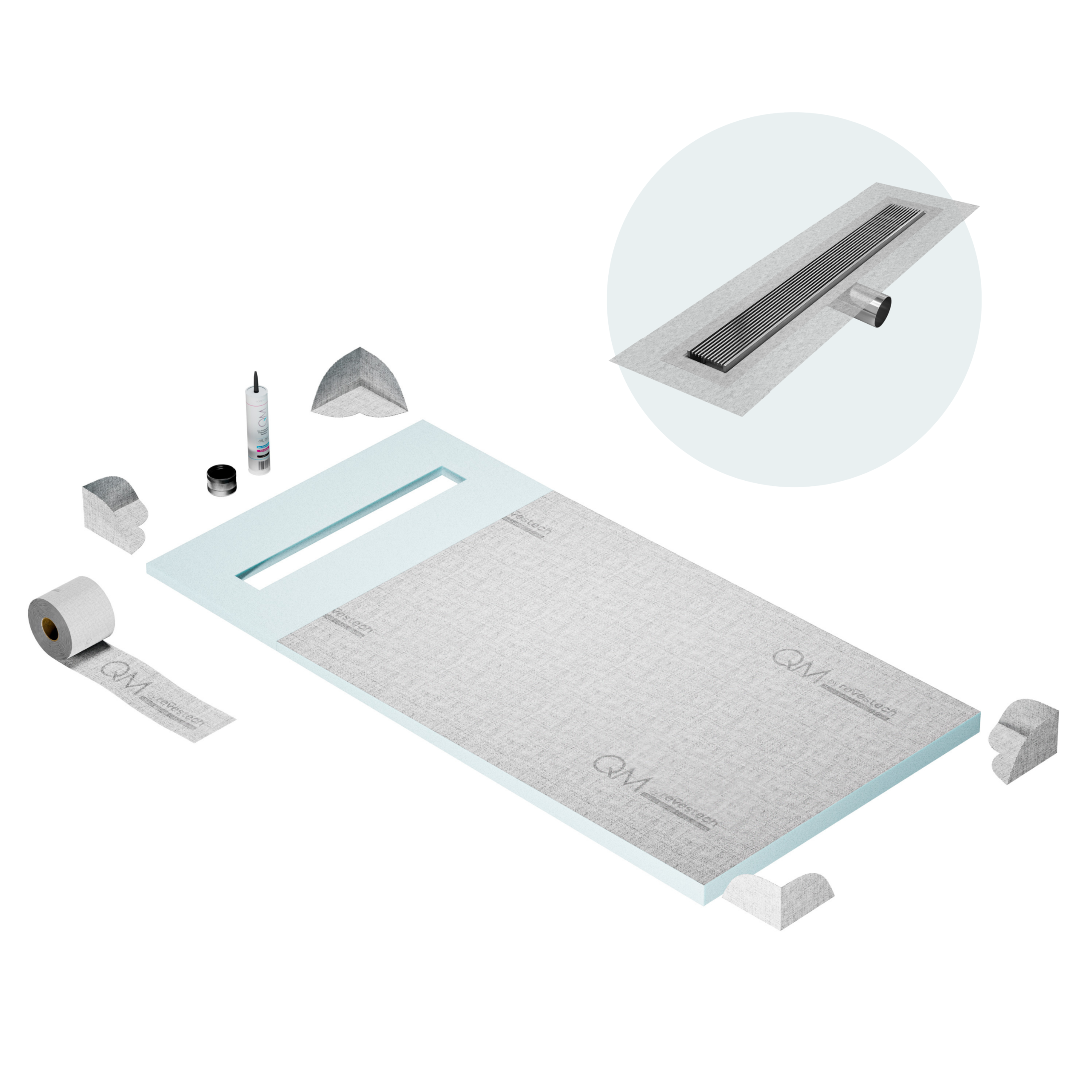 Pre-sloped shower board integrated seamlessly with Superdry waterproofing. It is the ideal solution for a mortar-free tiled shower. Quick and easy to install. No risk of mistaking the slope.