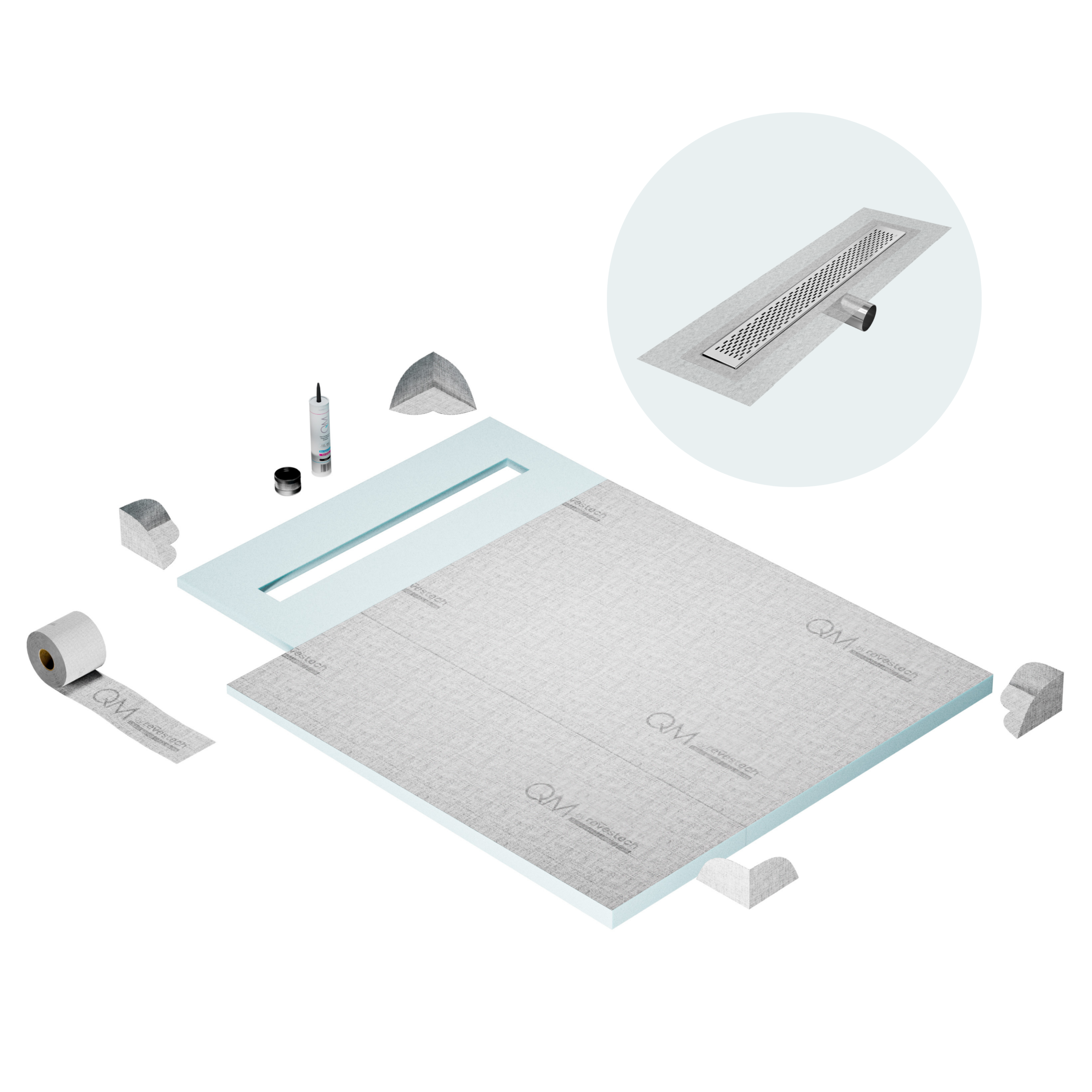 Committed to sustainable construction, avoiding environmental impact, and ensuring a healthy environment. QM shower pan and waterproofing membranes are 100% recyclable.