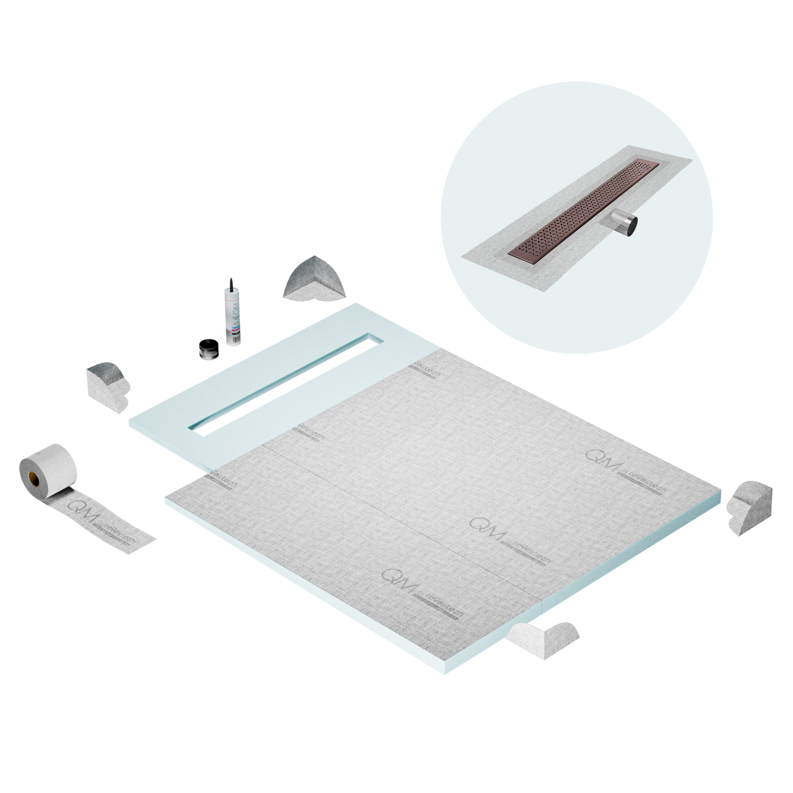 Committed to sustainable construction, avoiding environmental impact, and ensuring a healthy environment. QM shower pan and waterproofing membranes are 100% recyclable.