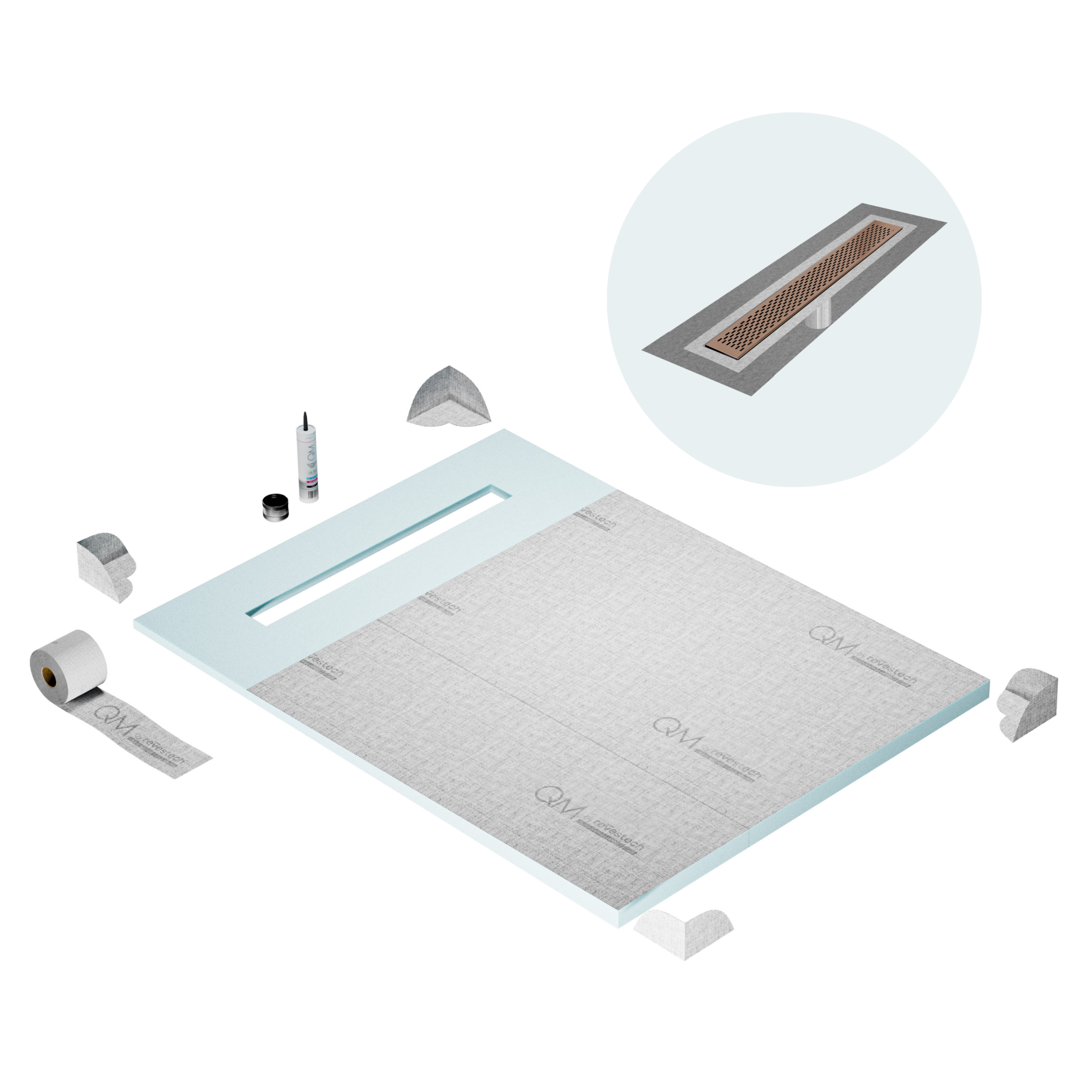 Committed to sustainable construction, avoiding environmental impact, and ensuring a healthy environment. QM shower pan and waterproofing membranes are 100% recyclable.