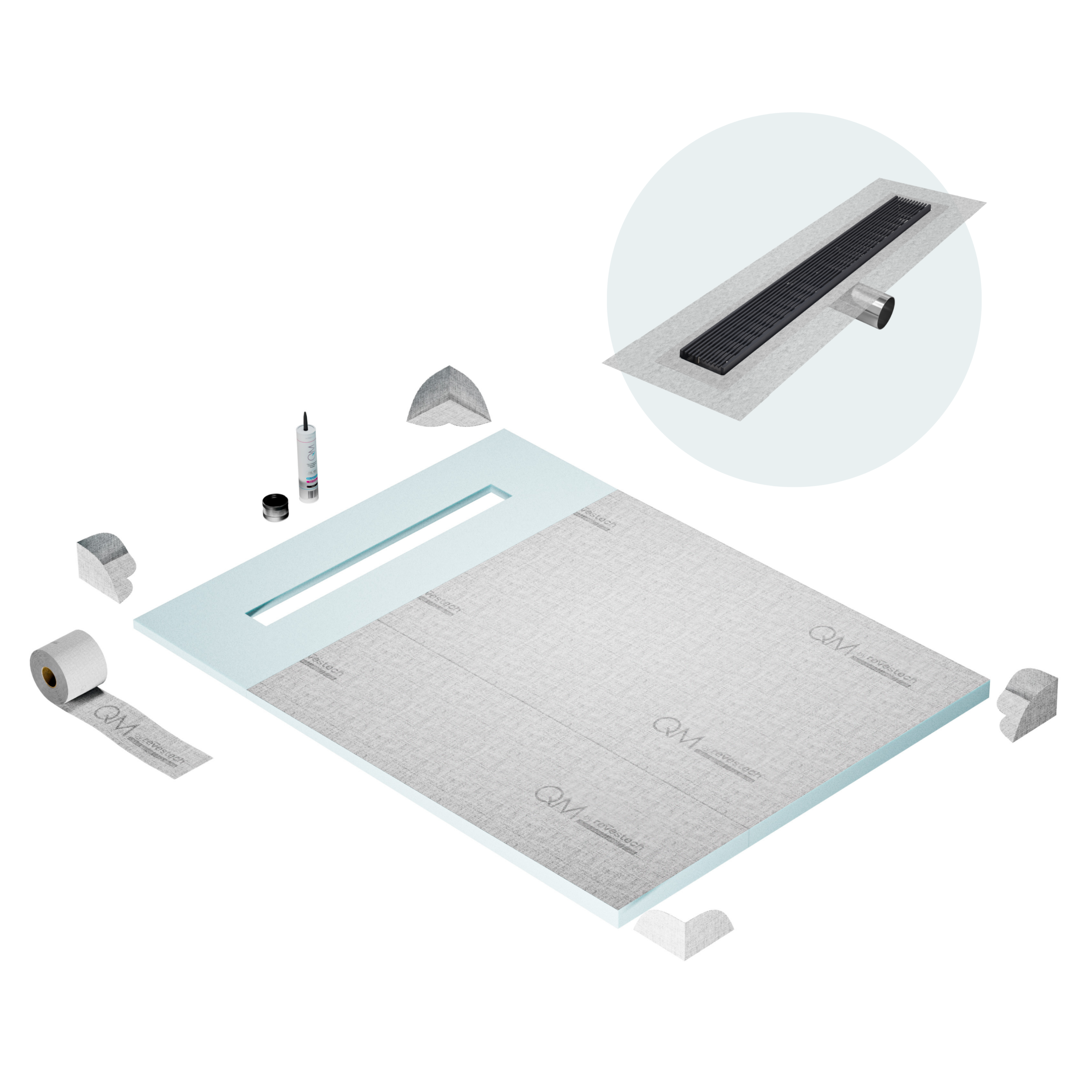 Committed to sustainable construction, avoiding environmental impact, and ensuring a healthy environment. QM shower pan and waterproofing membranes are 100% recyclable.