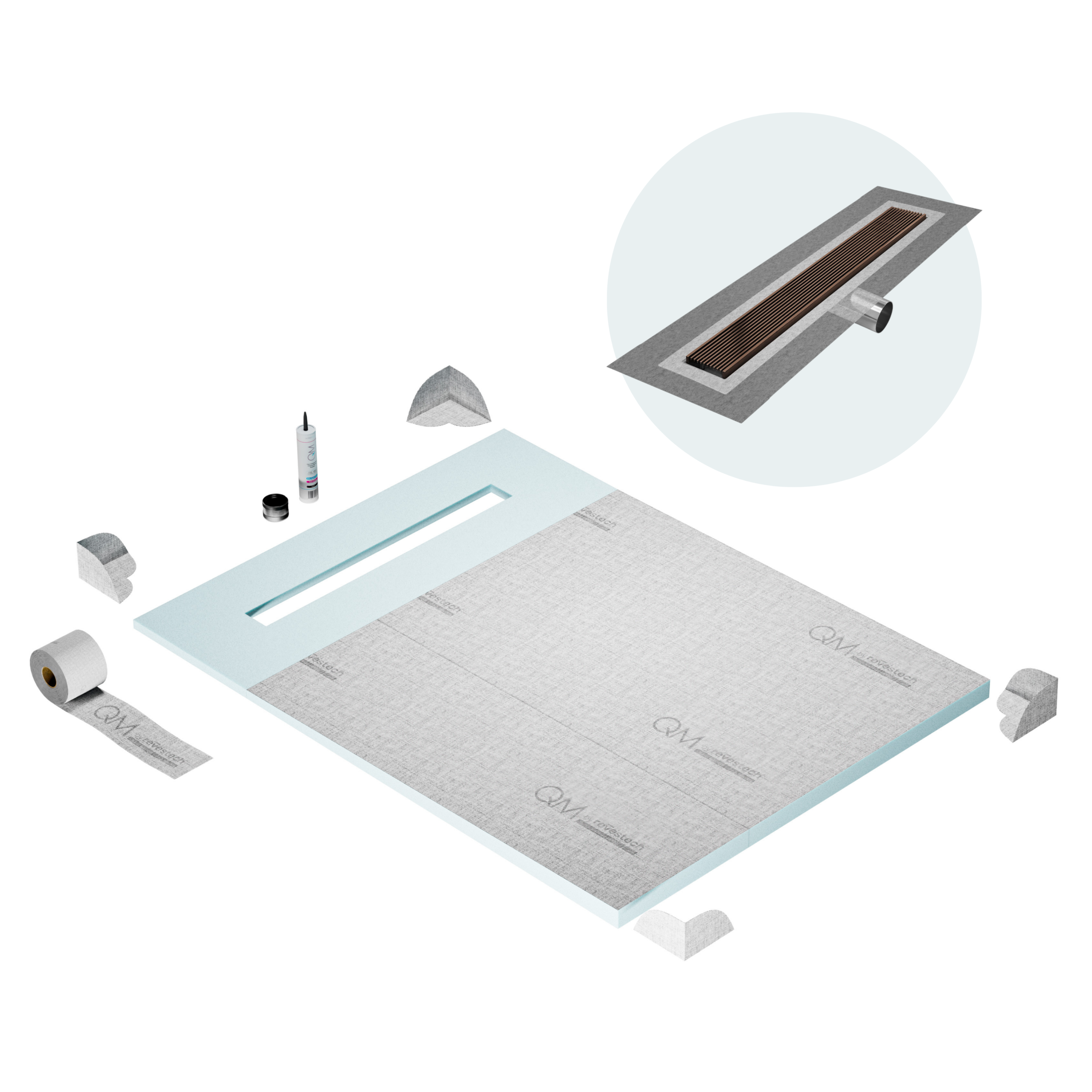 Committed to sustainable construction, avoiding environmental impact, and ensuring a healthy environment. QM shower pan and waterproofing membranes are 100% recyclable.
