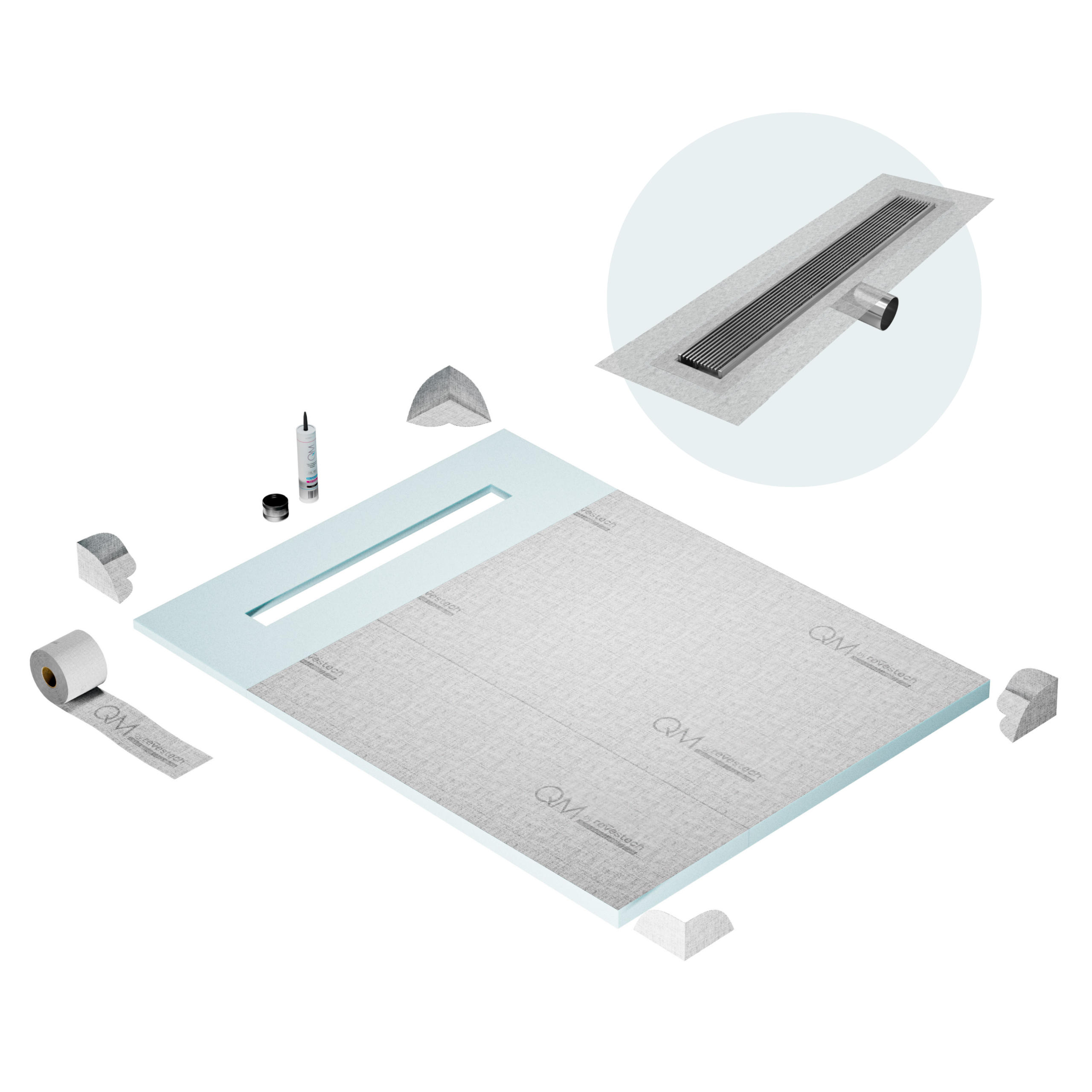 Committed to sustainable construction, avoiding environmental impact, and ensuring a healthy environment. QM shower pan and waterproofing membranes are 100% recyclable.