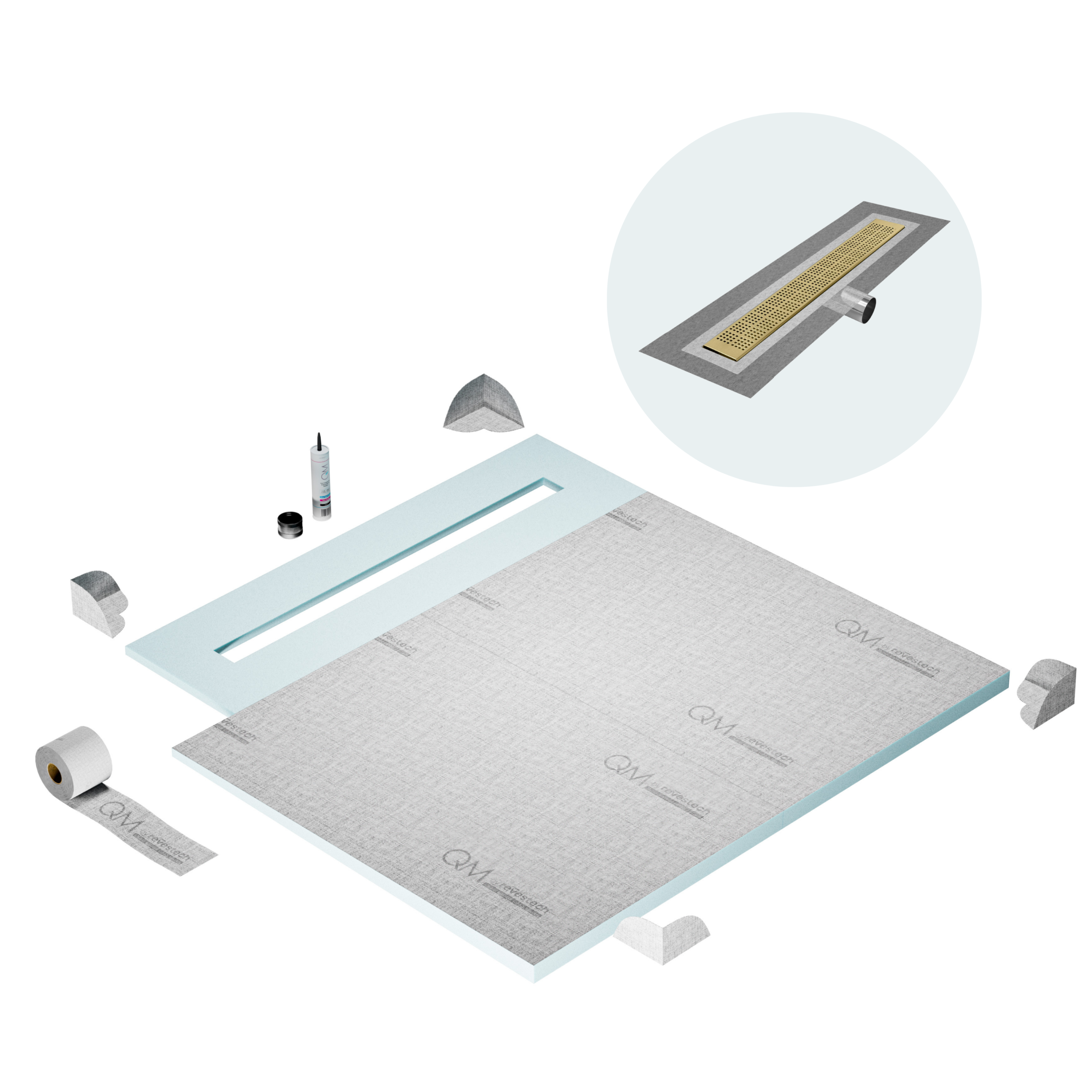 Committed to sustainable construction, avoiding environmental impact, and ensuring a healthy environment. QM shower pan and waterproofing membranes are 100% recyclable.