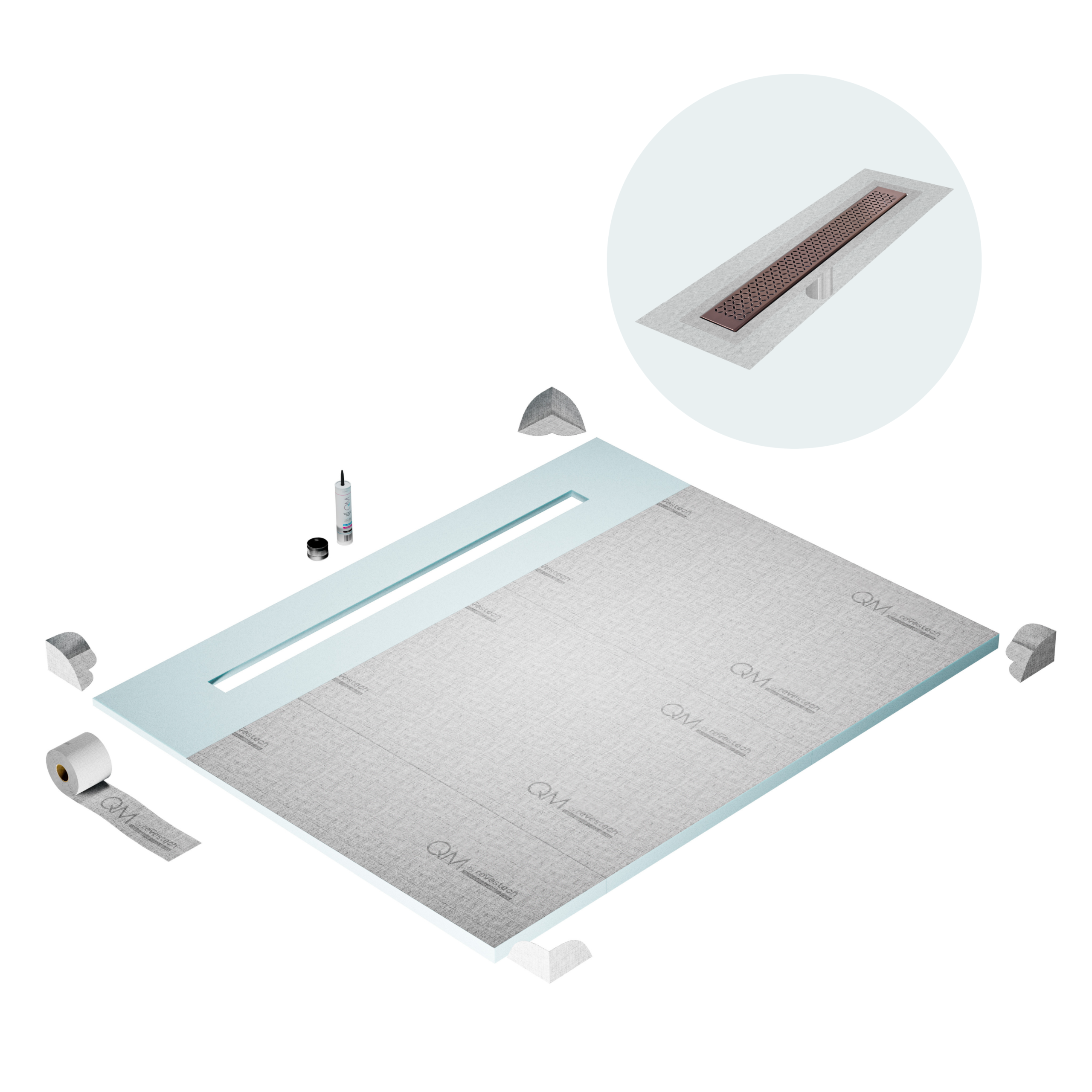 Committed to sustainable construction, avoiding environmental impact, and ensuring a healthy environment. QM shower pan and waterproofing membranes are 100% recyclable.