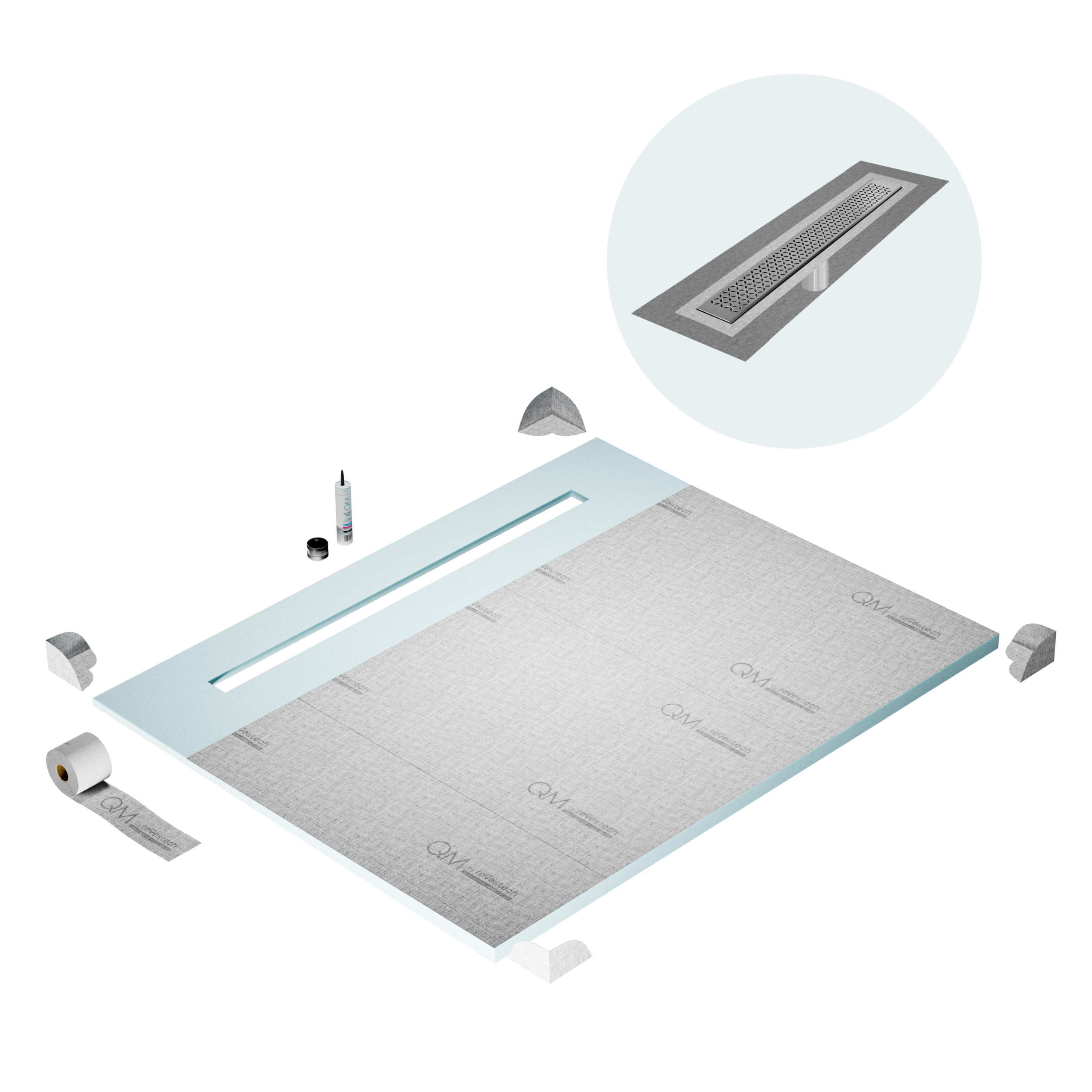 Pre-sloped shower board integrated seamlessly with Superdry waterproofing. It is the ideal solution for a mortar-free tiled shower. Quick and easy to install. No risk of mistaking the slope.