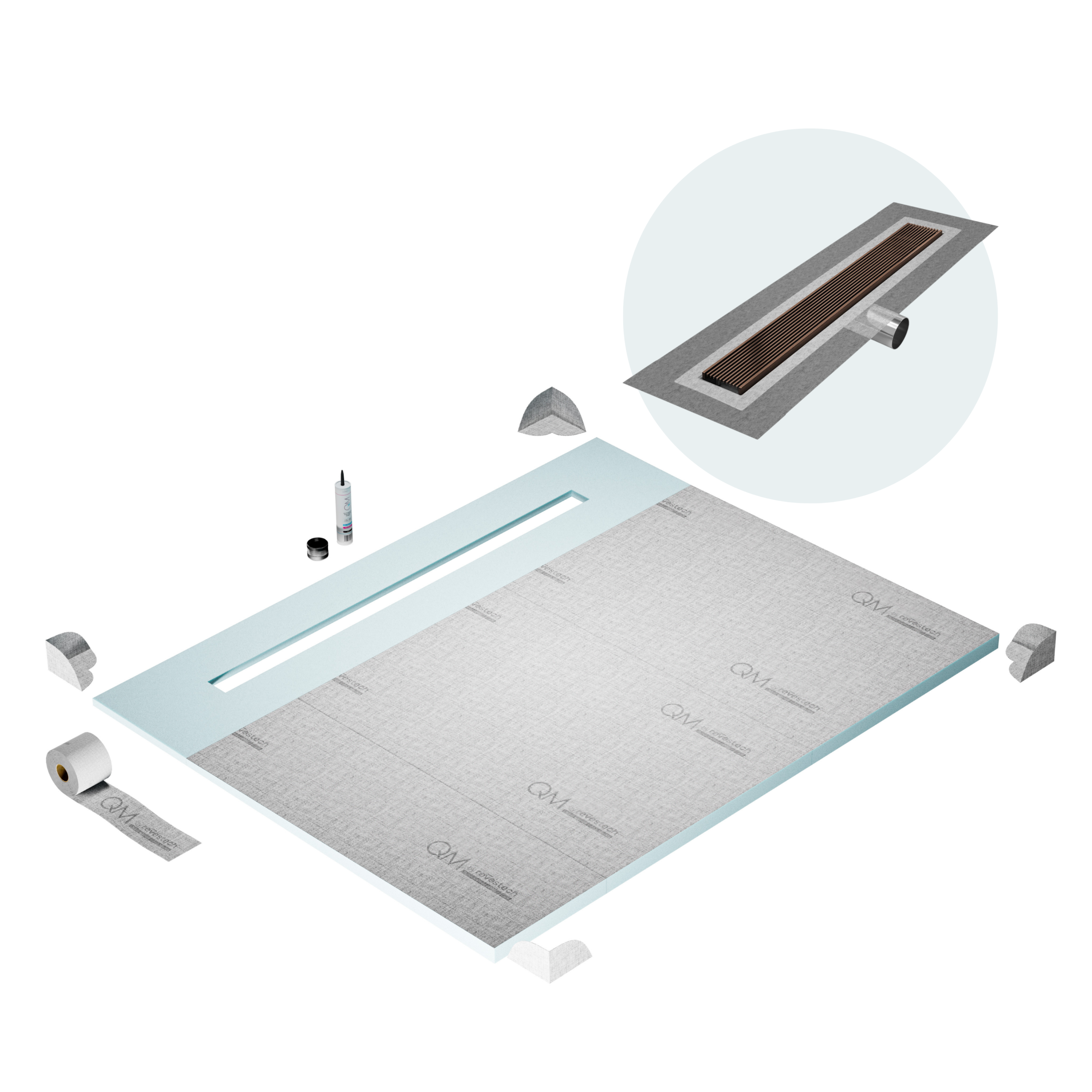 Committed to sustainable construction, avoiding environmental impact, and ensuring a healthy environment. QM shower pan and waterproofing membranes are 100% recyclable.