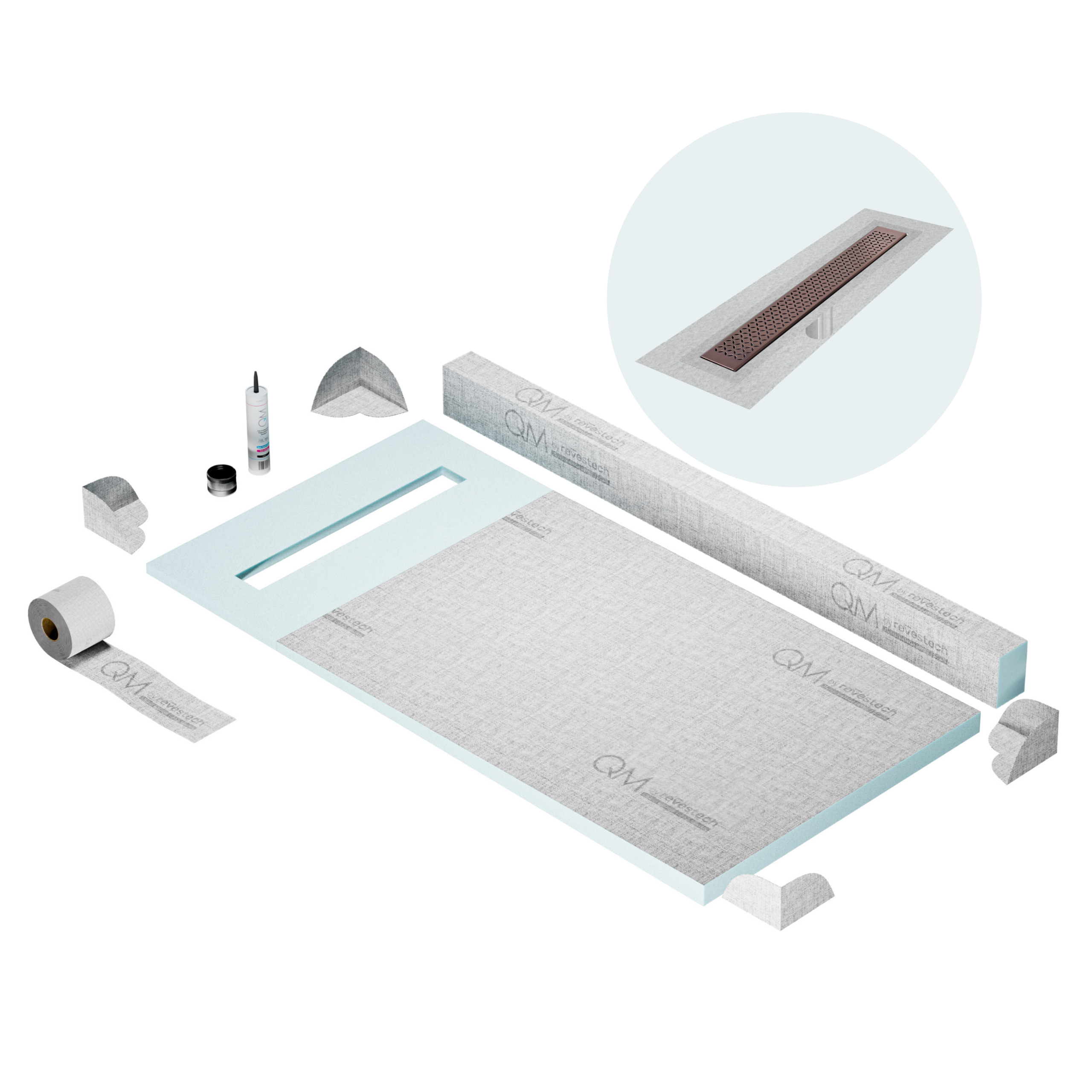 Committed to sustainable construction, avoiding environmental impact, and ensuring a healthy environment. QM shower pan and waterproofing membranes are 100% recyclable.