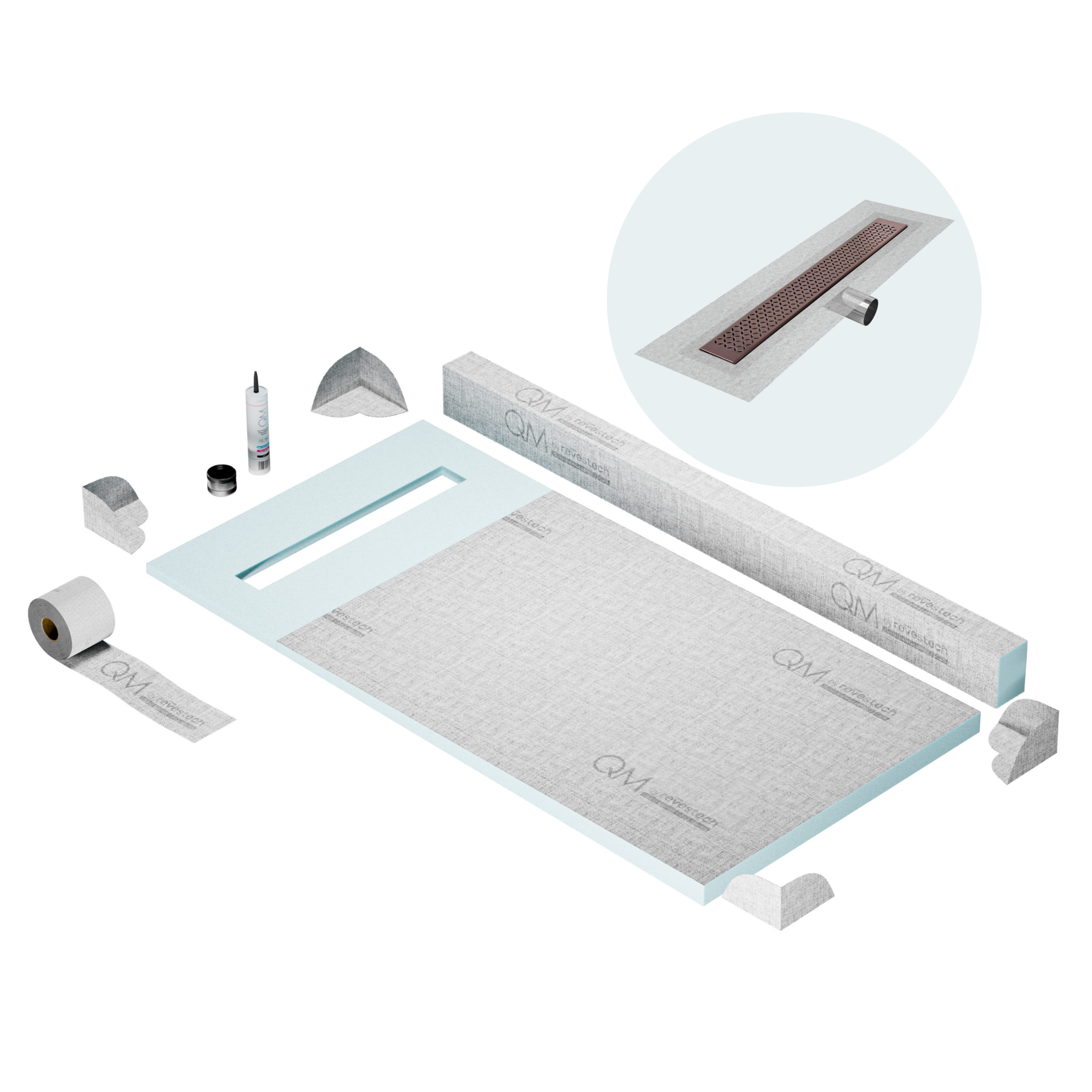 Pre-sloped shower board integrated seamlessly with Superdry waterproofing. It is the ideal solution for a mortar-free tiled shower. Quick and easy to install. No risk of mistaking the slope.