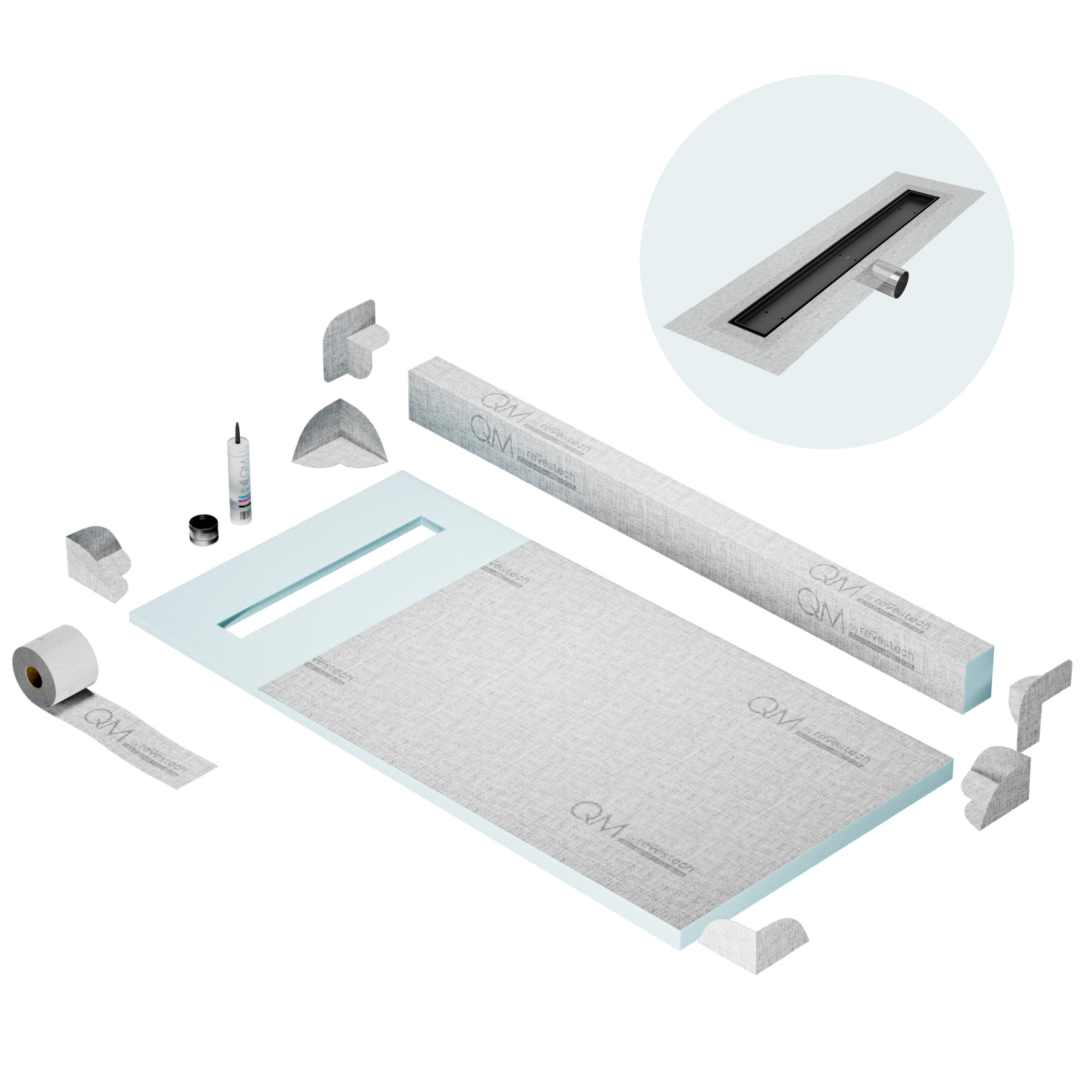 Committed to sustainable construction, avoiding environmental impact, and ensuring a healthy environment. QM shower pan and waterproofing membranes are 100% recyclable.
