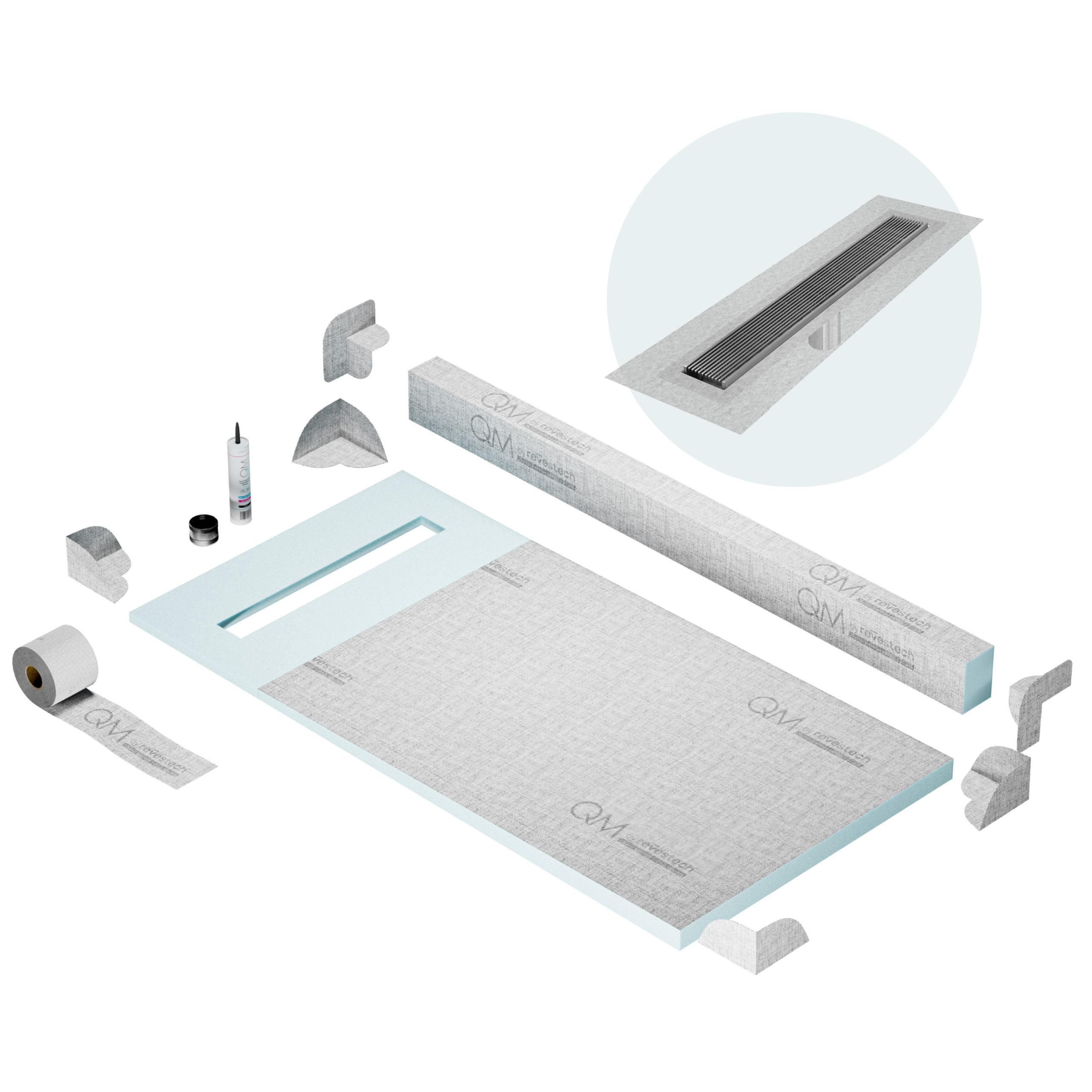 Linear Drain Kits Include:– Waterproofed Shower Pan in your desired size