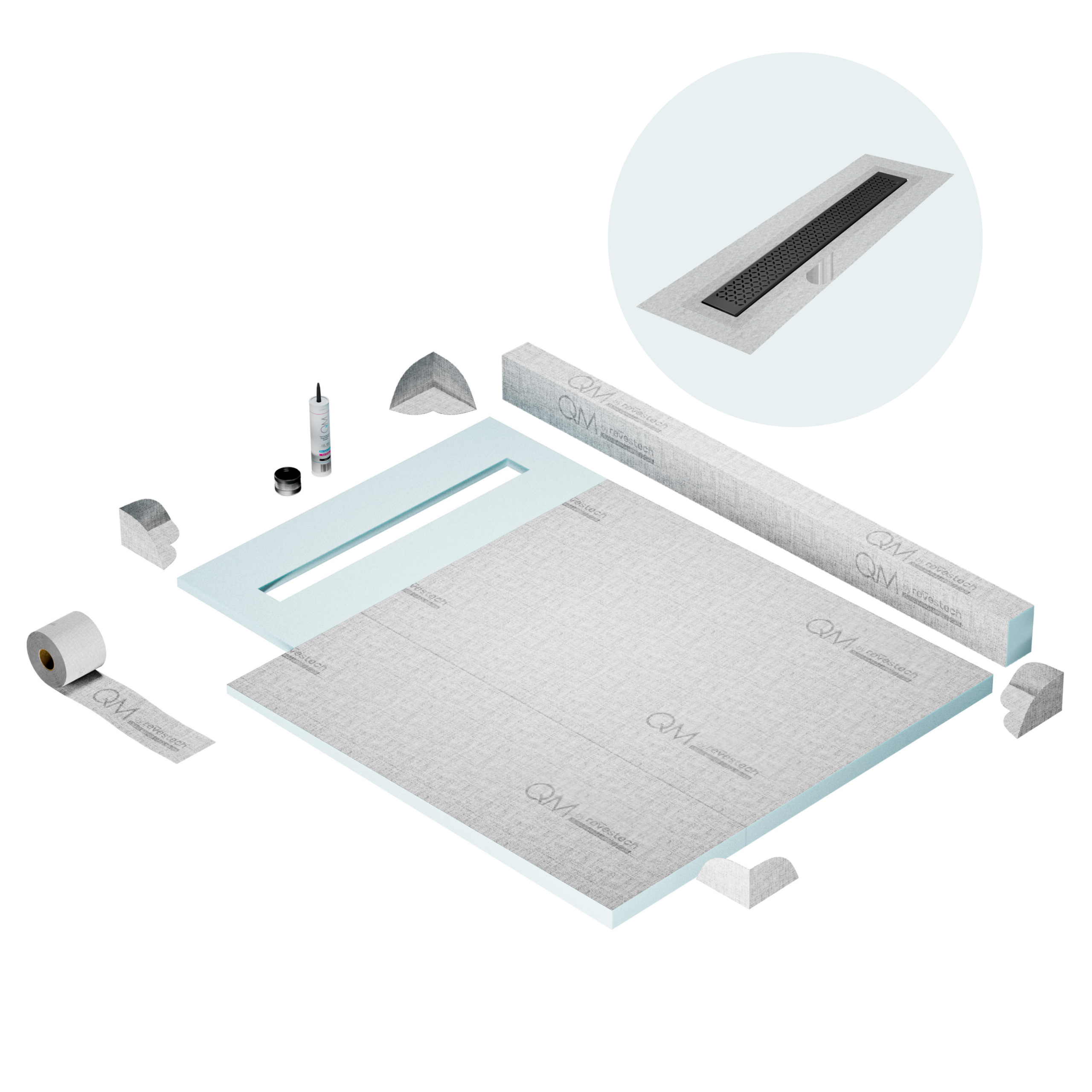 Committed to sustainable construction, avoiding environmental impact, and ensuring a healthy environment. QM shower pan and waterproofing membranes are 100% recyclable.